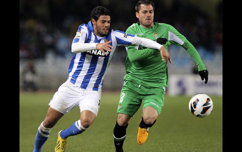 Deportes | Los Txuri Urdin igualan a tres goles donde Vela destaca con un tanto La Real y el Betis empatan en un soberbio partido Los Txuri Urdin igualan a tres goles donde Vela destaca con un tanto Por: EFE 3 de marzo de 2013 - 15:55 hs Carlos Vela (izq) sigue anotando para la Real y llega a 12 goles en la temporada. EFE / SAN SEBASTIAN, ESPAÑA (03/MAR/2013).- La Real Sociedad y el Betis hicieron buenos los pronósticos que auguraban un partido abierto y con goles y empataron a tres en un gran choque de fútbol con alternativas constantes en el marcador. La Real salió con ganas de dominar, pero el Betis no estaba por la labor de someterse y la primera parte transcurrió con un continuo ataque de ambos equipos en el que cualquiera pudo cambiar el signo del partido en los primeros minutos. Los donostiarras fueron más constantes y por medio de Zurutuza y sobre todo con Griezmann, al que anularon un gol de volea en el minuto 25 por posible fuera de juego, llevaron mucho peligro a la portería de Adrián. Los acontecimientos que marcarían el encuentro se precipitaron en un minuto loco, el 29, en el que Imanol Agirretxe remató al palo y cuando Anoeta se lamentaba por un gol que parecía hecho, el Betis en la acción siguiente validaría su contraataque con un gran tanto de Jorge Molina a pase de Campbell. La segunda mitad mantuvo el gran nivel que se esperaba de los dos equipos revelación de la Liga y recién entrado en el terreno de juego el Betis dispuso de una gran ocasión de gol que no desperdiciaría, tras una falta de entendimiento de Mikel y Bravo de la que se aprovechó Pabón para elevar el 0-2. Parecía el partido resuelto porque el tanto bético dejó callado Anoeta durante unos instantes pero el equipo realista estaba dispuesto a dar más y enseguida Carlos Vela, con su calidad habitual, acortó distancias con cuarenta minutos de juego por delante. El público local demandaba remontada, los jugadores recibieron el mensaje y la salida de un saque de esquina Iñigo Martínez de cabeza establecía el empate posteriormente en el minuto 60 una más que rigurosa mano señalada a Ángel generó un penalti que Xabi Prieto marcó con su seguridad habitual. Estaba más abierto el partido para una goleada local que para el empate pero éste se produjo en otra fulgurante contra del Betis en el que Pabón, en su gran noche, a pase del recién entrado Castro, cruzó el balón haciendo inútil la estirada de Bravo. Ficha técnica: 3 - Real Sociedad: Bravo; Carlos Martínez, Iñigo Martínez, Mikel, De la Bella; Bergara, Zurutuza (Rúbén Pardo, min. 66), Xabi Prieto (Diego Ifrán, min. 80); Griezmann, Vela y Agirretxe. 2 - Betis: Adrián, Ángel, Mario, Antonio, Nacho; Cañas, Beñat (Chica, min. 82), Campbell (Nono, min. 66), Juan Carlos (Castro, mibn,. 63); Pabón y Molina. Árbitro: Iglesias Villanueva, del colegio gallego. Enseñó tarjeta amarilla a Carlos Martínez, Cañas, Ángel, Campbell, Chica y Beñat. Goles: 0-1, min 29: Jorge Molina. 0-2. min. 48: Pabón. 1-2, min. 50: Carlos Vela. 2-2, min. 57: Iñigo Martínez. 3-2, min. 60: Xabi Prieto, de penalti. 3-3, min. min 67: Pabón. Incidencias: Partido de la vigésima sexta jornada de liga, disputado en el estadio de Anoeta ante 22 mil 162. Temas Futbol Español Futbol Internacional Carlos Vela Lee También El Oviedo recibe a los periquitos Futbol hoy 17 de octubre de 2025: ¿Dónde ver los partidos en vivo? Daniel Carrera presenta “La infalible” en el FICM ¿Erick Gutiérrez y Roberto Alvarado regresan a la actividad ante Mazatlán? Recibe las últimas noticias en tu e-mail Todo lo que necesitas saber para comenzar tu día Registrarse implica aceptar los Términos y Condiciones