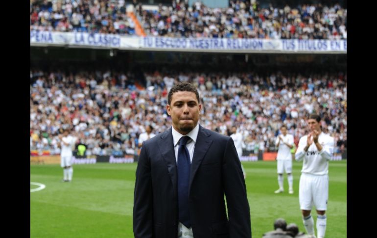 Deportes | El futbolista retirado fue homenajeado antes del partido Real Madrid-Sporting de Gijón La afición del Bernabeu aclama a Ronaldo El futbolista retirado fue homenajeado antes del partido Real Madrid-Sporting de Gijón Por: AFP 2 de abril de 2011 - 10:36 hs MADRID, ESPAÑA (02/ABR/2011).- El ex atacante brasileño del Real Madrid Ronaldo, retirado en febrero, fue aclamado este sábado en el estadio Santiago Bernabeu de la capital española, antes de hacer el saque de honor en el partido Real Madrid-Sporting de Gijón, en la jornada 30 de la Liga. Ronaldo, vestido con un traje oscuro, camisa blanca y corbata, recibió el homenaje de la hinchada 'merengue' cuando saltó al césped para recibir una pequeña estatua como obsequio y reconocimiento de la entidad, de manos del presidente del Real Madrid, Florentino Pérez. En la megafonía del estadio se anunció su nombre y el público respondió con aplausos, una gran ovación y cánticos. Ronaldo ganó con el Real Madrid dos Ligas y una Copa Intercontinental, entre 2002 y 2007. Marcó 102 goles con el equipo en esos años, según los datos oficiales registrados por el equipo blanco. El 'Fenómeno' brasileño, que había llegado desde el Inter de Milán, no mantuvo en ese 2007 buenas relaciones con el técnico italiano Fabio Capello en Madrid y acabó siendo vendido al Milan en enero de 2007. En su exitosa carrera recibió en tres ocasiones el premio de mejor jugador mundial de la FIFA (1996, 1997, 2002) y es, con quince dianas, el máximo goleador de la historia de las fases finales del Mundial. Con su selección ganó los Mundiales de 1994 y 2002 y la Copa América de 1997 y 1999. En su trayectoria en clubes pasó por el PSV Eindhoven, los españoles Barcelona y Real Madrid, los italianos Inter de Milán y Milan, y los brasileños Cruzeiro, en sus primeros años, y Corinthians, en su retirada. La selección brasileña ha preparado un homenaje a su histórico jugador para el día 7 de junio, con un amistoso frente a Rumanía. Temas Futbol Internacional Real Madrid Ronaldo Lee También Lista de clasificados al Mundial 2026 tras la Fecha FIFA de octubre México vs Ecuador • Momentos destacados • Partido amistoso ¿Dónde ver EN VIVO el partido amistoso México vs Ecuador? Hamás entrega cuatro cuerpos más de rehenes en Gaza Recibe las últimas noticias en tu e-mail Todo lo que necesitas saber para comenzar tu día Registrarse implica aceptar los Términos y Condiciones