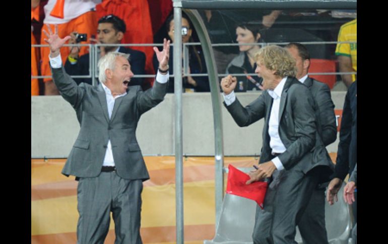 Deportes | Es la primera semifinal de Holanda desde Alemania 1974 La derrota estaba cerca: Marwijk El técnico holandés aseguró que pudieron quedar eliminados ante Brasil en los primeros 15 minutos de partido Por: EFE 2 de julio de 2010 - 12:12 hs El técnico holandés Bert van Marwijk (izq.) celebra el pase a semifinales de su equipo. AFP / LEA LA CRÓNICA DE ESTE PARTIDOPORT ELIZABETH, SUDÁFRICA (02/JUL/2010).- El seleccionador holandés Bert van Marwijk, reconoció que pudieron perder el partido de cuartos de final contra Brasil "en los primeros quince minutos" y tuvo que convencer a sus jugadores para que hicieran "su propio juego". "Pudimos perder en los primeros quince minutos. Se lo dejé claro a los jugadores en el descanso. Les dije una y otra vez: tienen que hacer su propio juego. Tienen que tener paciencia contra Brasil". Van Marwijk afirmó que después del gol del empate, marcado en propia meta por Felipe Melo, todo fue más fácil. "Cada vez fuimos jugando mejor", dijo. Con respeto a la expulsión de Melo, el técnico holandés dijo: "Si lo piensa fríamente, debería estar avergonzado, avergonzado por el futbol brasileño". Temas FIFA Mundial de Sudáfrica 2010 Selección de Holanda Recibe las últimas noticias en tu e-mail Todo lo que necesitas saber para comenzar tu día Registrarse implica aceptar los Términos y Condiciones