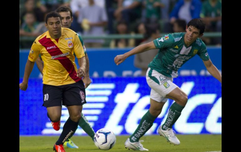 Deportes | En duelo de la jornada 5 de la Liga MX, 'La Fiera' y Monarcas firman el empate León y Morelia no se hacen daño En duelo de la jornada 5 de la Liga MX, 'La Fiera' y Monarcas firman el empate Por: SUN 10 de agosto de 2013 - 21:27 hs Jefferson Montero y Jonny Magallón en la disputa por el esférico. AFP / LEÓN, GUANAJUATO (10/AGO/2013).- León y Morelia no pasaron del empate sin goles en el Nou Camp, en duelo de la jornada 5 del Apertura 2013 de la Liga MX, resultado que mantiene a ambos equipos en la parte alta de la tabla. Los locales iniciaron el partido con mayor ímpetu, en busca del arco de Vilar, sin embargo, se toparon con una defensa de Monarcas bien plantada que poco a poco logró neutralizar la ofensiva leonesa. Los michoacanos buscaron un contragolpe que les diera la ventaja y en el segundo tiempo incluso tuvieron mayor llegada que los leoneses, que se fueron desdibujando en el terreno de juego. Govea y Valdez tuvieron opciones al final del partido para darle la victoria a Monarcas, pero ninguno logró definir con contundencia. Con este resultado, León suma su noveno punto, mientras que Morelia llegó a 10. En la próxima jornada, los 'Panzas Verdes' visitan a Pumas, mientras que Monarcas recibe al Atlas. Temas Futbol Mexicano Monarcas Morelia Panzas Verdes de León Liga MX Apertura 2013 Lee También 'Estuvimos más de 24 horas sin comida ni agua', padecen conductores bloqueos en carretera Guadalajara-Morelia EN VIVO: Maiceros bloquean carretera Guadalajara-Morelia ¿Dónde ver Argentina vs Colombia: semifinal del Mundial Sub-20? "Soy Frankelda", la primera película stop motion de México Recibe las últimas noticias en tu e-mail Todo lo que necesitas saber para comenzar tu día Registrarse implica aceptar los Términos y Condiciones