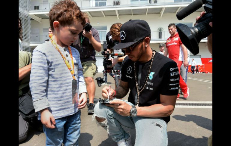 Deportes | Sugerencias del campeón en la rueda de prensa previa al Gran Premio de México Lewis Hamilton quiere champán, tequila y sombreros en el podio Sugerencias del campeón en la rueda de prensa previa al Gran Premio de México Por: EFE 29 de octubre de 2015 - 23:14 hs Lewis Hamilton firma un auto de juguete a un pequeño en la zona de Paddock del Autódromo Hermanos Rodríguez. EFE / A. Estrella CIUDAD DE MÉXICO (30/OCT/2015).- El piloto inglés Lewis Hamilton (Mercedes), tricampeón de Fórmula Uno, dijo ayer que el domingo debe haber tequila y sombreros, además del champán, en el podio final del Gran Premio de México. “Tiene que haber champán y tequila en el podio, y sombreros”, manifestó Hamilton en la rueda de prensa previa al Gran Premio de México, sobre un comentario del mexicano Sergio Pérez en torno las expectativas para la carrera. Sergio Pérez (Force India) y Carlos Sainz (Toro Rosso), presentes en la conferencia, asintieron el comentario de Hamilton sobre los elementos que tienen que ser considerados para los ocupantes del podio. Hamilton, quien aseguró el campeonato de esta temporada la semana pasada en Austin, señaló que no siente presión para la carrera del domingo, aunque subrayó que México representa el reto de tener una carrera después de muchos años de ausencia. Temas Automovilismo Lewis Hamilton Fórmula 1 Gran Premio de México Lee También México vs Argentina: ¿Quién ganará el partido según la IA? La F1 cambiaría formato de la qualy por culpa de Checo Pérez y Cadillac CDMX, con pronóstico de lluvias fuertes hoy sábado Dónde ver EN VIVO el México vs Argentina por el Mundial Sub-20 Recibe las últimas noticias en tu e-mail Todo lo que necesitas saber para comenzar tu día Registrarse implica aceptar los Términos y Condiciones