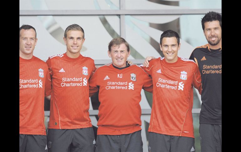 Deportes | El sub-17 Marco Bueno sigue en México Liverpool presenta a sus cinco nuevos refuerzos Los nuevos pupilos: Adam, Henderson, Downing y el arquero brasileño Doni Por: EL INFORMADOR 4 de agosto de 2011 - 02:18 hs El técnico Kenny Dalglish (centro) posa con las nuevas incorporaciones. REUTERS / LIVERPOOL, INGLATERRA (04/AGO/2011).- Una vez concluida su gira asiática donde disputó varios partidos amitosos en China y Malasia, el Liverpool arrancó con su última fase de pretemporada ya en casa, y lo primero que hizo fue presentar a sus nuevos refuerzos. El escocés Charlie Adam (ex capitán del Blackpool), Jordan Henderon (inglés sub-22 ex del Sunderland), Stuart Downing (quien llega del Aston Villa) y el arquero brasileño Alexander Doni (proviniente de la Roma) fueron presentados oficialmente a la prensa y a los aficionados en Anfield. Nadie extrañó al mexicano Marco Bueno, seleccionado campeón sub-17, quien viajará en los próximos días a hacer pruebas en el equipo. Aunque aún no es seguro que se quede. De acuerdo a los informes de la directiva del Pachuca, Bueno estaría viajando el próximo día 12 de este mes para ponerse a las órdenes del técnico Kenny Dalglish. Así lo informó Andrés Fassi, director deportivo del Pachuca, quien descartó que una de las condiciones de la directiva que conforma sea exigirle al conjunto inglés que el juvenil mexicano tenga actividad constante con aquella escuadra. El sábado contra el Valencia Liverpool tendrá su partido de presentación este sábado ante el Valencia español, donde “King Kenny” Dalglish hará los últimos ajustes para estar listos la próxima semana que arranca la Liga Premier. Su primer rival será el Sunderland, ex equipo del refuerzo Henderson, partido que se jugará en el legendario Anfield. Temas Futbol Internacional Futbol Inglés Liverpool Recibe las últimas noticias en tu e-mail Todo lo que necesitas saber para comenzar tu día Registrarse implica aceptar los Términos y Condiciones