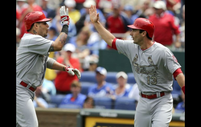 Deportes | El equipo de St. Louis obtiene su sexto triunfo en ocho salidas Los Cardenales obtienen la victoria frente a Kansas City El equipo de St. Luois obtiene su sexto triunfo en ocho salidas Por: AFP 27 de mayo de 2013 - 17:07 hs Yadier Molina y Matt Carpenter celebran la victoria de su equipo. AFP / KANSAS CITY, ESTADOS UNIDOS (27/MAY/2013).- El receptor puertorriqueño Yadier Molina terminó con dos imparables, incluido un jonrón de dos carreras, para que los Cardenales de St. Louis vencieran este lunes en las Grandes Ligas a los Reales de Kansas City con marcador de 6x3. El toletero Allen Craig añadió tres imparables y una empujada y Matt Carpenter agregaba un doblete productor y los Cardenales consiguieron su sexto triunfo en ocho salidas. La victoria fue para el astro derecho Adam Wainwright (7-3), quien estuvo en el box por espacio de ocho capítulos completos, en los que espació 12 imparables con tres carreras, mientras que el taponero Edward Mujica colgaba el cero en el noveno y se adjudicaba su decimoquinto rescate. Por los Reales, cuyo derrotado fue el también astro abridor James Shields (2-6), se lucieron con el madero Alex Gordon y el cubano Eric Hosmer, con una impulsada cada uno, y David Lough con cuatro hits y una anotada. Anotación por entradas: - 1 2 3 4 5 6 7 8 9 C H E St. Louis 2 0 2 1 0 1 0 0 0 6 12 0 Kansas City 1 0 2 0 0 0 0 0 0 3 13 0 Temas Beisbol MLB Cardenales de San Luis Recibe las últimas noticias en tu e-mail Todo lo que necesitas saber para comenzar tu día Registrarse implica aceptar los Términos y Condiciones