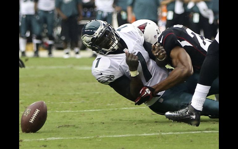 Deportes | Arizona gana de forma clara 27-6 el duelo ante las Águilas de Filadelfia Los Cardenales zarandean a Vick Arizona gana de forma clara 27-6 el duelo ante las Águilas de Filadelfia Por: AP 23 de septiembre de 2012 - 18:57 hs Vick (7) sufrió con la defensiva de Arizona este domingo. AP / GLENDALE, ARIZONA (23/SEP/2012).- Kevin Kolb lanzó para ganancia de 222 yardas y dos touchdowns, James Sanders regresó 93 yardas para anotación uno de los dos balones sueltos de Michael Vick y los Cardenales vencieron el domingo por 27-6 a las Águilas para su mejor inicio de temporada en 38 años. Kolb estuvo preciso, completando 17 de 24 pases, y Arizona (3-0) capturó a Vick en cinco ocasiones en su mejor inicio desde 1974, más de una docena de años antes de que el equipo se mudara al desierto. Los Cardenales han ganado además siete juegos consecutivos en casa, la segunda racha más larga en la historia de la franquicia. Filadelfia (2-1) fue el primer equipo de la NFL en abrir una temporada con dos victorias por un punto. Las Águilas no se dieron una oportunidad de repuntar para otro triunfo, destrozados por el quarterback a quien dejaron ir y acosados por la defensiva de Arizona. Las Águilas, con la mejor ofensiva de la NFL en los dos primeros juegos, tuvieron tres balones perdidos, con lo que suman 12 en la campaña. Temas NFL Futbol Americano Águilas de Filadelfia Cardenales de Arizona Lee También La NFL suspende a Brian Branch por golpear a jugador de Chiefs NFL: Resultados del Monday Night Football Futbol hoy 14 de octubre de 2025: ¿Dónde ver los partidos en vivo? Javier Aguirre asegura que realizará siete u ocho cambios ante Ecuador Recibe las últimas noticias en tu e-mail Todo lo que necesitas saber para comenzar tu día Registrarse implica aceptar los Términos y Condiciones