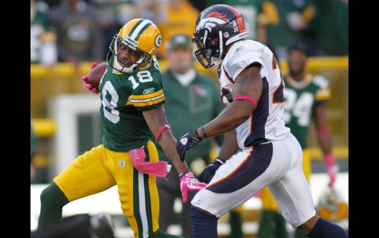 Deportes | Aaron Rodgers nunca jugó mejor Los Empacadores de Green Bay continúan invictos Aaron Rodgers nunca jugó mejor Por: AP 2 de octubre de 2011 - 18:28 hs Randall Cobb de los Empacadores de Green Bay sostiene el balón. REUTERS / GREEN BAY, WISCONSIN (02/OCT/2011).- Los Empacadores de Green Bay continúan invictos gracias al mejor día en la carrera de Aaron Rodgers, quien los guió el domingo a una victoria de 49-23 sobre los Broncos de Denver. Rodgers lanzó para ganancia de 408 yardas, la mayor de su carrera, empató una marca personal con cuatro pases para touchdown y corrió para dos anotaciones más. Charles Woodson regresó una intercepción para touchdown por los Packers (4-0), quienes se unieron a Detroit, sus adversarios de la División Norte de la Conferencia Nacional, como los únicos equipos que siguen invictos en la NFL. Eric Decker atrapó un par de pases para anotación de Kyle Orton por Denver (1-3). Orton lanzó para 273 yardas con tres touchdowns y tres intercepciones. El quarterback suplente Tim Tebow realizó una aparición breve y nada destacable por los Broncos al inicio del juego, pero el entrenador en jefe John Fox decidió no darle más trabajo cuando el juego se le fue de las manos en el cuarto período. Temas NFL Futbol Americano Empacadores de Green Bay Recibe las últimas noticias en tu e-mail Todo lo que necesitas saber para comenzar tu día Registrarse implica aceptar los Términos y Condiciones