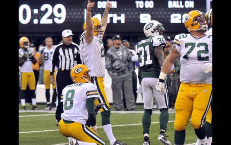 Deportes | Green Bay vence con tres goles de campo a Nueva York con todo y Mark Sánchez Los Empacadores someten a los Jets Green Bay vence con tres goles de campo a Nueva York con todo y Mark Sánchez Por: AP 31 de octubre de 2010 - 14:45 hs Mason Crosby festeja el tercero de sus goles de campo con lo que le dio la victoria al equipo de Green Bay. REUTERS / EAST RUTHERFORD, NUEVA JERSEY (31/OCT/2010).- Mason Crosby logró tres goles de campo y fue todo lo que necesitaron los Empacadores de Green Bay para derrotar el domingo por 9-0 a los Jets de Nueva York. Mark Sánchez y la ofensiva de los Jets no lograron hacer gran cosa, y la racha de cinco triunfos seguidos de Nueva York terminó luego de una semana de descanso. Los Jets (5-2) fueron impedidos de anotar por primera vez desde el 19 de noviembre del 2006, cuando cayeron 10-0 ante los Osos de Chicago. El mariscal de campo Aaron Rodgers y sus Packers (5-3) no tuvieron tampoco un día fácil, pero hicieron lo suficiente para ganar un segundo partido en fila pese al fuerte viento en el flamante estadio New Meadowlands. El viento le jugó malas pasadas a las ofensivas aéreas y de pateo de ambos equipos, pues tanto Crosby como el pateador de los Jets Nick Folk fallaron goles de campo, mientras que Sánchez y Rodgers lanzaron a menudo pases que no estuvieron cerca de sus receptores. Temas NFL Futbol Americano Jets de Nueva York Empacadores de Green Bay Lee También Ivar Sisniega reveló que México tendrá partidos en Centroamérica México busca romper su mala racha ante la Conmebol frente a Ecuador Gilberto Mora REACCIONA en redes tras su eliminación del Mundial Sub-20 ¿Cuánto cuestan y dónde comprar boletos para el México vs Ecuador? Recibe las últimas noticias en tu e-mail Todo lo que necesitas saber para comenzar tu día Registrarse implica aceptar los Términos y Condiciones