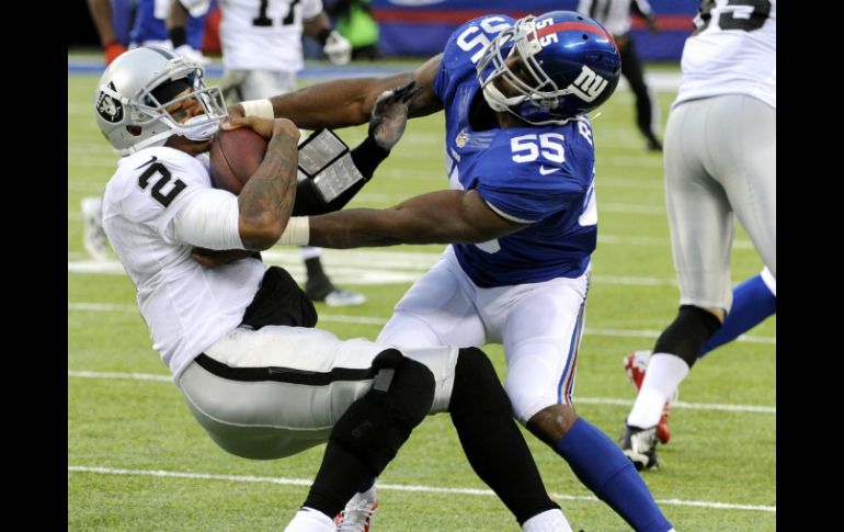 Deportes | Las entregas de balón fueron claves para la victoria de Nueva York 24-20 ante Raiders Los Gigantes ganan su tercero consecutivo Las entregas de balón fueron claves para la victoria de Nueva York 24-20 ante Raiders Por: AP 10 de noviembre de 2013 - 14:43 hs La actuación de la defensa también fue clave para la victoria de los Gigantes. AP / EAST RUTHERFORD, NUEVA JERSEY (10/NOV/2013).- Terrell Thomas devolvió una intercepción por 65 yardas, lo que preparó el terreno para que Andre Brown anotara en un acarreo de una yarda, y los Gigantes de Nueva York hilaron su tercer triunfo al vencer el domingo a los Raiders de Oakland por 24-20. Los erráticos Gigantes (3-6) anotaron sus primeros 17 puntos contra los Raiders (3-6) en entregas de balón durante la primera mitad del encuentro. Pero además Brown les produjo 115 yardas por tierra en su primer partido de la campaña, y un buen desempeño de su defensa les ayudó a mantener viva la temporada. A pesar de que sufrió una intercepción que se tradujo en anotación, Eli Manning lanzó un pase de cinco yardas para anotación a Rueben Randle, mientras que Cooper Taylor anotó en una devolución de 21 yardas tras un bloqueo a una patada de despeje. Josh Brown añadió un gol de campo. Terrelle Pryor anotó con una carrera de una yarda para Oakland, y Tracy Porter hizo lo propio con una devolución de 43 yardas tras una intercepción. Sebastian Janikowski anotó dos goles de campo. Temas NFL Futbol Americano Gigantes de Nueva York Raiders de Oakland Lee También Futbol hoy 22 de octubre de 2025: ¿Dónde ver los partidos en vivo? ¿Cuánto vale la 'Hormiga' González, joya de Chivas que ya es pretendida fuera de México? Atlas busca revancha ante León en el Estadio Jalisco México se impone a Países Bajos y respira en el Mundial Sub-17 Femenil Recibe las últimas noticias en tu e-mail Todo lo que necesitas saber para comenzar tu día Registrarse implica aceptar los Términos y Condiciones