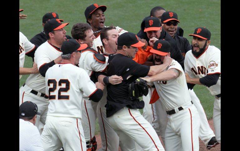 Deportes | Adrián González se queda sin postemporada Los Gigantes le quitan el boleto a los Padres San Francisco derrota 3-0 ante San Diego y con esto se adjudican el gallardete de la Oeste de la Nacional Por: AP 3 de octubre de 2010 - 18:44 hs Los Gigantes de San Francisco, festejan su pase a la siguiente fase luego de 6 años. MEXSPORT / SAN FRANCISCO, CALIFORNIA (03/OCT/2010).- Los Gigantes de San Francisco regresaron ,del brazo de Jonathan Sánchez, a los playoffs tras una ausencia de seis años al blanquear 3-0 a los Padres de San Diego y ganar el título de la división Oeste de la Liga Nacional. Los Gigantes lo lograron al fin en su tercer intento contra los Padres este fin de semana y capturaron su primer banderín divisional y su primera participación en la postemporada desde el 2003. San Francisco recibirá el jueves a los Bravos de Atlanta con su wild card en el AT&T Park y les dará la bienvenida con Tim Lincecum bien descansado para el primer partido. Los Bravos vencieron 8-7 a los Filis poco antes. El boricua Sánchez (13-9) lanzó hasta la sexta y cedió tres hits al tiempo que dio cinco boletos. También contribuyó con el bate, al pegarle de triple al novato Mat Latos (14-10) y anotar la primera carrera del partido en el tercer inning. Dos contiendas por llegar a los playoffs en la Nacional se resolvieron hasta el partido número 162. San Diego perdió la posibilidad de forzar un partido para el lunes contra los Gigantes en el Petco Park con miras a decidir al ganador de la división Oeste de la Nacional. El perdedor de ese encuentro tendría que haber viajado a Atlanta para determinar el eventual comodín si hubiera habido un triple empate. El venezolano Pablo Sandoval y otros jugadores de los Gigantes agitaron toallas naranja en la caseta luego que el cerrador Brian Wilson acertó en strike los dos primeros lanzamientos a Will Venable con dos outs en la novena. Cuando Venable se ponchó abanicando, el receptor novato Buster Posey corrió hacia Wilson y juntos pegaron de salto de alegría en la lomita. Temas Beisbol MLB Padres de San Diego Gigantes de San Francisco Playoffs de Grandes Ligas Recibe las últimas noticias en tu e-mail Todo lo que necesitas saber para comenzar tu día Registrarse implica aceptar los Términos y Condiciones