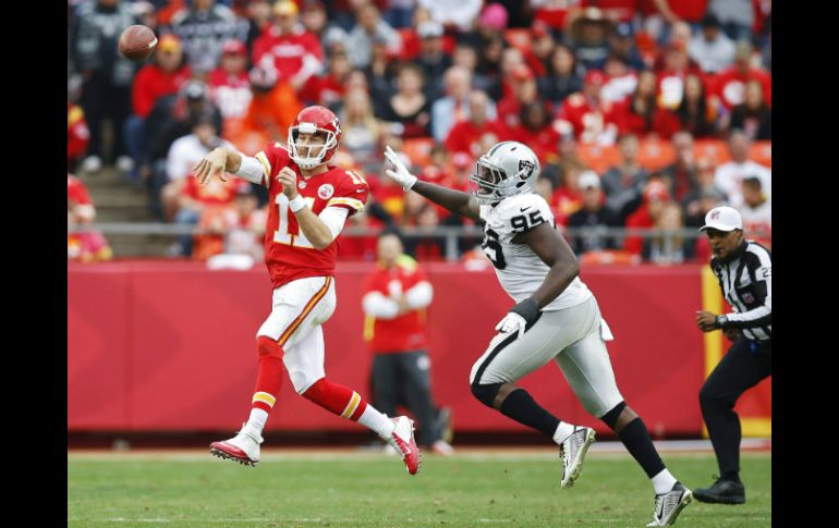 Deportes | Kansas City se impone 31-13 y domina a Derek Carr y a la ofensiva de Oakland Los Jefes aplastan a los Raiders Kansas City se impone 31-13 y domina a Derek Carr y a la ofensiva de Oakland Por: AP 14 de diciembre de 2014 - 16:47 hs Alex Smith pasa para 297 yardas y dos anotaciones durante el partido. EFE / L. Smith KANSAS CITY, MISSOURI (14/DIC/2014).- Alex Smith pasó para 297 yardas y dos anotaciones; Kansas City dominó a Derek Carr y a la ofensiva de Oakland, y los Jefes se impusieron el domingo a los Raiders por 31-13 para poner fin a una racha de tres derrotas. Knile Davis logró un touchdown por tierra y otro con una recepción, y De'Anthony Thomas devolvió un despeje 81 yardas para otra anotación. Los Jefes (8-6) vengaron así la derrota de 24-20 ante Oakland (2-12) el mes pasado. Kansas City tenía ventaja de 10-6 a inicios del tercer cuarto antes de anotar tres touchdowns en 4:42 minutos. El último fue un pase de 70 yardas de Smith a Davis, que se encargó de la mayoría de las labores en la posición de running back luego de que Jamaal Charles recibiera un golpe en la cabeza. Charles superó al parecer las pruebas de conmoción cerebral y volvió brevemente al encuentro. Carr completó 27 de 56 envíos para 222 yardas, lanzando un pase de touchdown en el último minuto. El novato de los Raiders fue capturado cuatro veces y soltó un centro para un fumble que abrió la puerta a un touchdown de Kansas City. Temas NFL Futbol Americano Jefes de Kansas City Raiders de Oakland Lee También México busca frenar el paso perfecto de Argentina en Mundial Sub-20 CEO de Coca-Cola aclara si retiraría patrocinio del Super Bowl Lista actualizada de selecciones que ya clasificaron al Mundial 2026 Mundial 2026 traerá derrama millonaria al país Recibe las últimas noticias en tu e-mail Todo lo que necesitas saber para comenzar tu día Registrarse implica aceptar los Términos y Condiciones