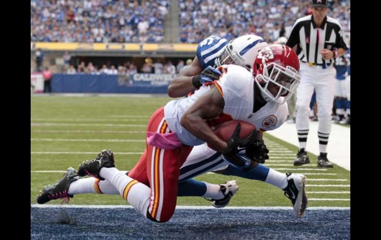 Deportes | Kansas City hace una espectacular remontada y sacan el juego 28-24 Los Jefes doman a los Potros Kansas City hace una espectacular remontada y sacan el juego 28-24 Por: AP 9 de octubre de 2011 - 15:05 hs Steve Breaston atrapa un pase de 11 yardas para darle la victoria a los Jefes. AP / INDIANÁPOLIS, INDIANA (09/OCT/2011).- Matt Cassel lanzó el domingo para 257 yardas y cuatro touchdowns al tiempo que los Jefes de Kansas City anotaron los últimos 21 puntos para imponerse 28-24 y dejar a los Potros de Indianápolis todavía sin el sabor de la victoria. Dwayne Bowe y Steve Breaston atraparon cada uno dos pases de touchdown en lo que fue la primera victoria de los Jefes (2-2) en Indianápolis. Kansas City coronó una remontada de 17 puntos, la mayor en la historia del equipo. Mientras Peyton Manning observaba desde fuera del campo, Curtis Painter tuvo una primera mitad brillante. Concretó 12 de 17 pases para 237 yardas con dos touchdowns y un promedio como quarterback de 152.2 mientras los Potros (0-5) se ponían adelante por 24-7. Pero Cassel localizó a Breaston para un pase de touchdown de 16 yardas poco antes del descanso, y Bowe siguió con una anotación de 5 yardas a 40 segundos del final del tercer período para acercar a los Jefes a 24-21. Entonces, con 5:15 en el reloj, Breaston consiguió la anotación definitiva al atrapar un pase de 11 yardas. Temas NFL Futbol Americano Potros de Indianápolis Jefes de Kansas City Recibe las últimas noticias en tu e-mail Todo lo que necesitas saber para comenzar tu día Registrarse implica aceptar los Términos y Condiciones