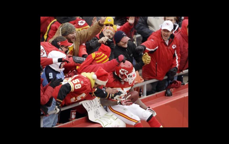 Deportes | Cassel lanza tres pases de anotación Los Jefes ganan 34-14 a los Titanes Cassel lanza tres pases de anotación Por: AP 26 de diciembre de 2010 - 15:02 hs Jamaal Charles festejó con la afición la victoria de su equipo. AP / KANSAS CITY, MISURI (26/DIC/2010).- Matt Cassel lanzó tres pases de anotación, Eric Berry corrió 54 yardas tras una intercepción para anotar y los Jefes de Kansas City superaron a los Titanes de Teneessee por 34-14. Cassel conectó 12 de sus primeros 13 pases, incluidos lanzamientos de touchdown para Jamaal Charles en las dos primeras posesiones. Los Chiefs arrancaron rápido y llevaron su marca de 10-5. La ventaja de los Jefes en la división Oeste de la Conferencia Americana quedó en un partido y medio, a la espera del partido de San Diego en Cincinnati, que se jugaba más tarde. Los Titanes, con foja de 6-9, pasaron gran parte del partido dejando caer pases, fallando en los intentos de derribar contrarios y acumulando penalidades. Fue su séptima derrota en ocho partidos. Las 10 victorias de los Jefes empataron las que lograron en total en las tres temporadas anteriores. Temas NFL Futbol Americano Titanes de Tennessee Jefes de Kansas City Lee También ¿Dónde ver EN VIVO el partido de J13 San Luis vs Atlas? Esto piensa Santana de la presentación de Bad Bunny en el Super Bowl México, entre países que han comprado más boletos para el Mundial 2026 ¿Dónde ver EN VIVO el partido de J13 Tigres vs Necaxa? Recibe las últimas noticias en tu e-mail Todo lo que necesitas saber para comenzar tu día Registrarse implica aceptar los Términos y Condiciones