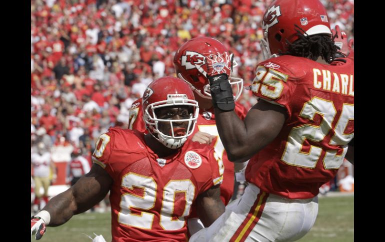 Deportes | Vencieron a San Francisco por pizarra de 31-10 Los Jefes siguen invictos en la NFL El equipo de Kansas City sigue sin conocer la derrota en la presente temporada Por: AP 26 de septiembre de 2010 - 16:41 hs Thomas Jones del equipo de Kansas (20) celebra el triunfo ante San Francisco. AP / KANSAS CITY, MISSOURI (26/SEP/2010).- Matt Cassel lanzó tres pases de anotación incluyendo una jugada de truco que hizo ver mal al equipo de San Francisco, y los Jefes de Kansas City mantienen el invicto en la presente temporada al vencer por 31-10 a los 49ers, los cuales siguen sin conocer la victoria. Después de arrancar 0-4 hace un año y ganar sólo 10 partidos las tres temporadas anteriores combinados, los Jefes están 3-0 por primera vez desde 2003. Cassel se fue con 16 completo de 27 intentos para 250 yardas. Temas NFL Futbol Americano Gigantes de San Francisco Jefes de Kansas City Lee También México busca frenar el paso perfecto de Argentina en Mundial Sub-20 CEO de Coca-Cola aclara si retiraría patrocinio del Super Bowl Lista actualizada de selecciones que ya clasificaron al Mundial 2026 Mundial 2026 traerá derrama millonaria al país Recibe las últimas noticias en tu e-mail Todo lo que necesitas saber para comenzar tu día Registrarse implica aceptar los Términos y Condiciones