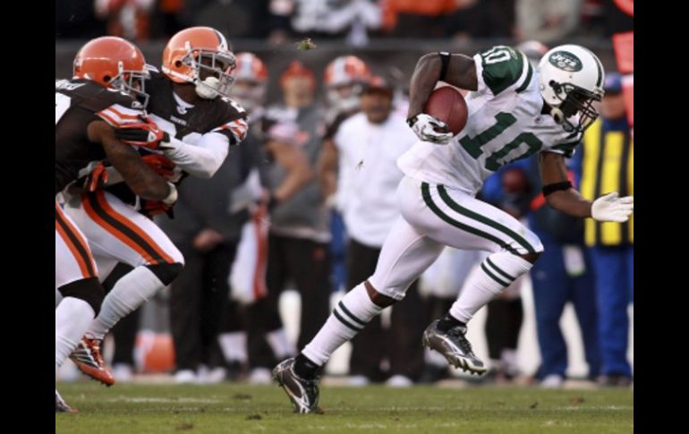 Deportes | Gracias a la anotación de Holmes, Nueva York consiguió la victoria 26 por 20 ante Cafés Los Jets ganan en tiempo extra Gracias a la anotación de Santonio Holmes, Nueva York consiguió la victoria 26 por 20 ante los Cafés Por: AP 14 de noviembre de 2010 - 16:28 hs Santonio Holmes corriendo con el dominio del balón. REUTERS / CLEVELAND OHIO (14/NOV/2010).- El receptor abierto Santonio Holmes anotó con pase de 37 yardas de Mark Sánchez cuando quedaban 16 segundos al tiempo extra y los Jets de Nueva York ganaron el domingo 26-20 a los Cafés de Cleveland en su octavo triunfo consecutivo de temporada regular como visitantes. Fue la segunda victoria seguida en tiempo extra para los Jets (7-2), quienes ganaron 23-20 en Detroit hace una semana. Nueva York se sobrepuso a tres intentos de gol de campo de Nick Folk, todos fallidos, incluido uno de 47 yardas en la prórroga. En primera oportunidad y 10 yardas por avanzar, Sánchez envió un pase rápido a Holmes, quien al recibir el balón superó el marcaje del safety novato T. J. Ward y aceleró hasta la zona de anotación. Los Browns (3-6) repuntaron y forzaron el tiempo extra con un pase de anotación de tres yardas del mariscal de campo novato Colt McCoy a Mohamed Massaquoi con 44 segundos por jugarse en el tiempo regular. Temas NFL Futbol Americano Jets de Nueva York Cafés de Cleveland Recibe las últimas noticias en tu e-mail Todo lo que necesitas saber para comenzar tu día Registrarse implica aceptar los Términos y Condiciones
