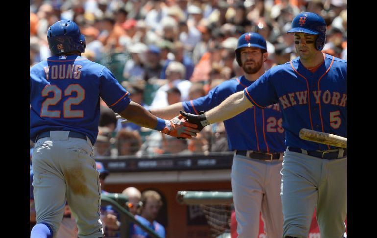 Deportes | Este es el cuarto triunfo consecutivo de los Mets Los Mets completan barrida en San Francisco Este es el cuarto triunfo consecutivo de los Mets Por: AP 10 de julio de 2013 - 17:49 hs El jugador Eric Young es felicitado por sus compañeros tras obtener la victoria. AFP / SAN FRANCISCO, ESTADOS UNIDOS (10/JUL/2013).- Zack Wheeler lanzó siete entradas con buen control, Marlon Byrd volvió a conectar un cuadrangular y los Mets de Nueva York barrieron una serie en San Francisco por primera vez desde 1994 al vencer el miércoles 7-2 a los Gigantes. Daniel Murphy y John Buck conectaron dos imparables cada uno y remolcaron dos carreras en el cuarto triunfo consecutivo de los Mets, incluidos los tres últimos encuentros frente a los campeones de la Serie Mundial, que se han desinflado en las últimas semanas. San Francisco ha perdido 16 partidos de 19. Wheeler (3-1), a quien los Gigantes seleccionaron en la primera ronda de un draft, los maniató sin carreras hasta la séptima entrada. Sólo permitió una anotación y tres hits en total, al tiempo que ponchó a cinco y otorgó tres boletos. Matt Cain (5-6) permaneció menos de un inning en el montículo por primera vez en su carrera, luego de que toleró tres carreras y dos hits sin que pudiera sacar más de dos outs. Regaló tres bases por bolas. Por los Gigantes, los venezolanos Gregor Blanco de 3-0, Pablo Sandoval de 3-1 y Marco Scutaro de 1-0. El puertorriqueño Andrés Torres de 1-0. El dominicano Tony Abreu de 3-0, con una remolcada. Nueva York 300 022 000_7 8 0 San Francisco 000 000 101_2 6 2 Z.Wheeler, Edgin (8), Hawkins (9) y Buck; M.Cain, Kickham (1), Kontos (7), Affeldt (8), J.López (9) y Posey. G_Z.Wheeler 3-1. P_M.Cain 5-6. Jrs_Nueva York, Byrd (15). Temas Beisbol MLB Mets de Nueva York Gigantes de San Francisco Recibe las últimas noticias en tu e-mail Todo lo que necesitas saber para comenzar tu día Registrarse implica aceptar los Términos y Condiciones