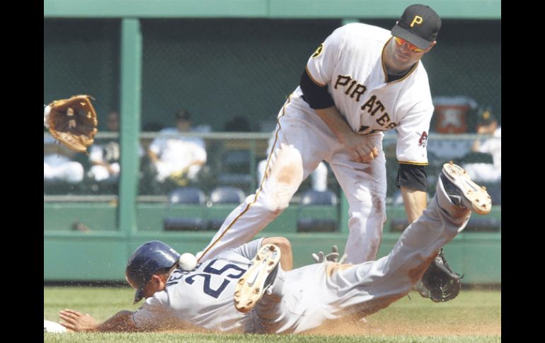 Deportes | Pittsburgh hila 10 derrotas Los Piratas navegan sin rumbo Los Padres de San Diego se llevan el triunfo por 7-3 Por: EFE 8 de agosto de 2011 - 01:25 hs Neil Walker intenta salvar un pésimo tiro del catcher Ryan Doumit, por lo que Will Venable pudo robarse la almohadilla. AP / PITTSBURGH, ESTADOS UNIDOS (08/AGO/2011).- El abridor Matt Latos trabajó siete episodios completos para llevar a los Padres de San Diego a un triunfo por 7-3 sobre los Piratas de Pittsburgh, que sumaron 10 derrotas consecutivas. La derrota da a los Piratas su peor racha en 125 años en juegos celebrados como equipo local. Esta es la primera vez en la historia de la franquicia que los Piratas suman siete derrotas seguidas en su campo, y ningún otro equipo había sumado esa cantidad de juegos como equipo local desde que los Reales de Kansas City lo tuvieron en mayo de 2006. Latos (6-11) lanzó siete episodios completos, permitió cuatro imparables, dos carreras, dio una base y retiró a siete por la vía del ponche contra los Piratas, que sumaron registro de 0-7 en su campo del PNC Park contra los Padres y los Cachorros de Chicago. En el ataque, el antesalista Logan Forsythe encabezó el ataque con tres carreras remolcadas y fue apoyado por el jardinero Will Venable, quien remolcó dos. La derrota la cargó el abridor Kevin Correia (12-10) en cinco episodios y dos tercios, permitió cinco imparables, cuatro carreras, dio cuatro bases y retiró a tres por la vía del ponche. Soria llega a 21 rescates El cerrador mexicano Joakim Soria lanzó un episodio para apuntarse el rescate número 21 de la temporada, y permitió el triunfo de los Reales de Kansas City 4-3 sobre Detroit. Soria permitió sólo un imparable, tras enfrentar a cuatro enemigos y los puso bajo control con 11 envíos, siete de ellos perfectos, y dejó en 4.43 su promedio de efectividad. Temas Beisbol MLB Padres de San Diego Lee También MLB: Resultados de las Series de Campeonato Charros de Jalisco buscará frenar su racha negativa en juegos inaugurales de la LMP Revelan el número de personas no localizadas tras lluvias "atípicas" Dónde ver EN VIVO los juegos de MLB, HOY 13 de octubre Recibe las últimas noticias en tu e-mail Todo lo que necesitas saber para comenzar tu día Registrarse implica aceptar los Términos y Condiciones