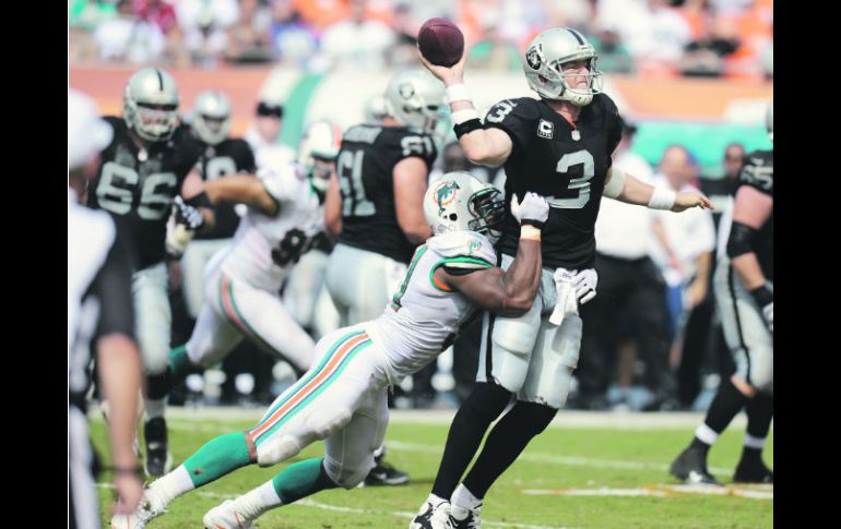 Deportes | Oakland deja muchas dudas al arranque de la campaña Los Raiders viven una pesadilla Oakland deja muchas dudas al arranque de la campaña, tras ser exhibido en las derrotas ante San Diego y Miami Por: EL INFORMADOR 19 de septiembre de 2012 - 03:34 hs Carson Palmer, quarterback de los Raiders, es capturado por Cameron Wake, durante el juego en la casa de los Delfines. AP / GUADALAJARA, JALISCO (19/SEP/2012).- Los Raiders de Oakland esperan que su nueva época despegue, luego de un inicio por demás turbulento. Darren McFadden todavía busca entrar a su ritmo dentro de un nuevo sistema. La defensa contra la carrera tiene demasiados huecos. Y la defensiva secundaria, reconstruida durante el receso de campaña, no fue capaz de presionar a un quarterback novato como Ryan Tannehill. Estos son los Raiders actuales, que tienen marca de 0-2, por primera vez desde que Lane Kiffin era su coach en 2007. “Hay muchas cosas que debemos mejorar”, afirmó Dennis Allen, entrenador en jefe, que está en su primer año, “obviamente, no estamos donde quisiéramos como un equipo, debemos seguir trabajando”. Los Raiders abrieron la campaña con una derrota en casa por 22-14 ante San Diego, donde hicieron “agua” con los equipos especiales al sufrir tres patadas de despeje bloqueadas, luego de la lesión de su centro especialista, Jon Condo. La semana pasada, cayeron 35-13 ante Miami. Reggie Bush corrió para 172 yardas –de un total de 263 que los Delfines acumularon por tierra- y anotó dos touchdowns. Tannehill completó 18 de 30 pases, para 200 yardas. Oakland no tuvo mucho para presumir a la ofensiva, con su único touchdown producto de un pase de 64 yardas al corredor suplente Mike Goodson. Carson Palmer completó solamente 50 por ciento de sus pases, y McFadden fue limitado a 22 yardas en 11 acarreos. Por segunda semana consecutiva, los Raiders fueron limitados a yardaje negativo en la segunda mitad. Lo único positivo del inicio de campaña es que Oakland ha bajado su promedio de castigos por juego, cometiendo solamente 11 en dos encuentros. Su promedio en 2011 fue de 10 por cada partido. Allen cambió su plan de trabajo, y reunió a todo el equipo para analizar el video del partido, en lugar de la tradicional división entre ofensiva y defensiva. “No fue una junta divertida”, afirmó el centro Stefen Wisniewski, “no quieres tener demasiadas reuniones como ésa, con todo el equipo viendo el video de un partido malo, pero eso debemos de hacer para mejorar”. Allen dijo que ha visto esa estrategia antes, y que eso ayuda a crear cohesión en un equipo. Varios jugadores de Oakland dijeron que era una nueva experiencia para ellos. “No estás acostumbrado a verlo con todo el equipo sino exclusivamente con tu unidad”, confesó el esquinero Joselio Hanson. Los problemas a resolver para los Raiders –previo a su juego del domingo recibiendo a Pittsburgh- es echar a andar el juego terrestre y averiguar quién jugará como esquinero. La cifra 1 Touchdown anotado por Oakland en dos partidos disputados Por ciertoMuere el jefe de NFL Films Steve Sabol, presidente de NFL Films y parte de un equipo de padre e hijo que ayudaron a convertir al futbol americano en un deporte tan popular, falleció el martes víctima de cáncer en el cerebro. Sabol tenía 69 años. FRASE"Debemos emplear bien al personal que va a jugar, tenemos mucha gente capaz para sacar adelante al equipo "Dennis Allen, coach de los Raiders Temas NFL Futbol Americano Raiders de Oakland Lee También El Tri Sub-17 femenil va por la revancha mundialista en Marruecos ¿Dónde ver EN VIVO el partido de J13 Cruz Azul vs América? ¿Dónde ver EN VIVO el partido de J13 Chivas vs Mazatlán? ¿Dónde ver EN VIVO el partido de J13 San Luis vs Atlas? Recibe las últimas noticias en tu e-mail Todo lo que necesitas saber para comenzar tu día Registrarse implica aceptar los Términos y Condiciones