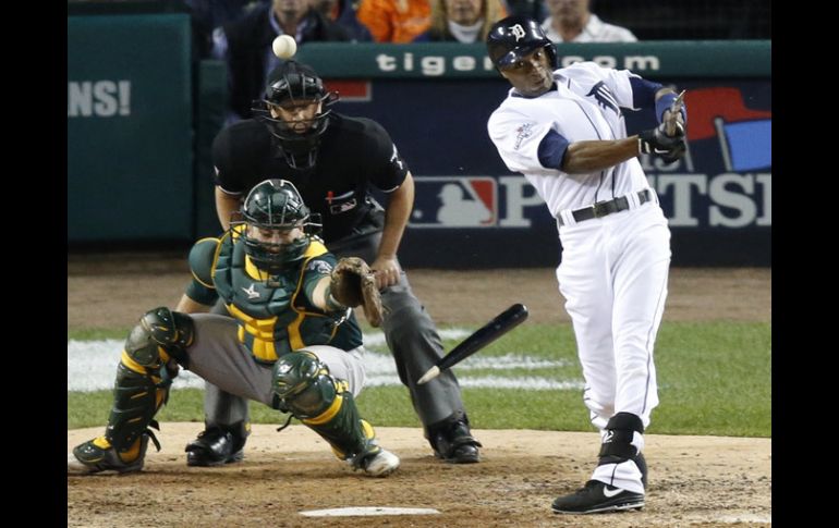 Deportes | Los felinos ganan el cuarto juego 8-6 y obligan al quinto y definitivo duelo Los Tigres de Detroit empatan la serie Los felinos ganan el cuarto juego 8-6 y obligan al quinto y definitivo duelo Por: AP 8 de octubre de 2013 - 19:39 hs Austin Jackson rompe su bat con un sencillo productor durante la parte final del partido. AP / DETROIT, MICHIGAN (08/OCT/2013).- El dominicano Jhonny Peralta conectó un jonrón de tres carreras que empató la pizarra por vez primera y el venezolano Víctor Martínez volvió a igualarla mediante un polémico vuelacerca, para que los Tigres de Detroit vencieran el martes 8-6 a los Atléticos de Oakland y obligaran a un quinto duelo en la serie de primera ronda de playoffs en la Liga Americana. Max Scherzer salió de un predicamento, con las bases llenas en una inusitada labor como relevista, para que los Tigres sobrevivieran en un encuentro en que podían ser eliminados. Los Tigres, que estuvieron en desventaja buena parte del encuentro, empataron primero con el bambinazo de Peralta en la quinta entrada. En la séptima, Martínez pegó un batazo sin hombres en las almohadillas, y un par de aficionados se estiraron por encima de la cerca en busca de atrapar la pelota. Al menos uno de ellos malabareó la esférica, lo que impidió que el jardinero derecho Josh Reddick tuviera oportunidad alguna de atraparla mediante un gran salto. Reddick y el jardinero central Coco Crisp protestaron de inmediato y señalaron hacia el graderío con la esperanza de que se marcara una interferencia de los espectadores. Pero los umpires ratificaron el cuadrangular en solitario tras revisar la repetición en video. Scherzer, quien cumplió su primera aparición como relevista desde la postemporada de 2011, había permitido ya una carrera en la séptima entrada. Con los Tigres arriba por 5-4, obsequió un boleto y permitió un doble en el comienzo de la octava. Pero después de un pasaporte intencional que llenó las bases, el manager Jim Leyland dejó en el montículo a su astro, ganador de 21 juegos. Scherzer ponchó a Reddick y a Stephen Vogt, antes de obligar a que el emergente venezolano Alberto Callaspo conectara una línea al jardín central, para el tercer out. Detroit, que no conectó hits en los primeros cuatro innings, añadió tres carreras en el octavo, gracias a un lanzamiento descontrolado y a un doble del venezolano Omar Infante, que puso la pizarra en 8-4. El cubano Yoenis Céspedes conectó un sencillo de dos carreras en la novena entrada, para que la carrera potencial del empate llegara a la caja de bateo. Pero el dominicano Joaquín Benoit ponchó a Seth Smith para poner fin al encuentro. Ahora, los Tigres podrían enviar a Justin Verlander a la lomita para el quinto partido, el jueves por la noche, en Oakland. Verlander maniató a los Atléticos en el quinto y definitivo juego de estas mismas instancias, el año pasado. Oakland no ha anunciado quién será su abridor. Es el turno del dominicano Bartolo Colón en la rotación, pero el novato Sonny Gray podría laborar también, con descanso normal, después de su actuación sobresaliente en el segundo juego. Por los Atléticos, el cubano Yoenis Céspedes de 5-2, dos remolcadas. El venezolano Alberto Callaspo de 1-0. Por los Tigres, los venezolanos Martínez de 4-3, dos anotadas y una remolcada; Miguel Cabrera de 4-1; Infante de 4-1, dos remolcadas; y Hernán Pérez con una anotada como corredor emergente. El dominicano Peralta de 3-2, una anotada y tres empujadas. El cubano José Iglesias de 3-0. LA TIRILLA DEL PARTIDO Oakland 100 020 102_6 12 0 Detroit 000 030 23x_8 9 0 Straily, Doolittle (7), Otero (7), Cook (8), Bre.Anderson (8) y Vogt; Fister, Scherzer (7), Benoit (9) y Avila. G_Scherzer 2-0. P_Doolittle 0-1. Jrs_Oakland, Lowrie (1). Detroit, Jh.Peralta (1), V.Martínez (1). Temas Beisbol MLB Atléticos de Oakland Playoffs de Grandes Ligas Tigres de Detroit Lee También Marineros vencen a Azulejos y están a un triunfo de su primera Serie Mundial Tigres hunde más al Necaxa y Puebla le remonta al Tijuana Charros de Jalisco remonta y vence a Guasave con una gran noche de Bligh Madris Ohtani impulsa a los Dodgers a la Serie Mundial Recibe las últimas noticias en tu e-mail Todo lo que necesitas saber para comenzar tu día Registrarse implica aceptar los Términos y Condiciones