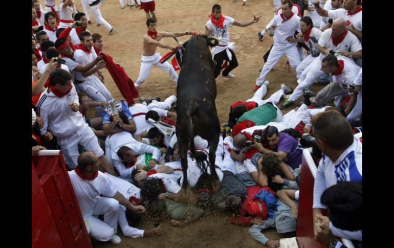 Deportes | El sexto encierro fue el más veloz hasta el momento en las Sanfermines Los Victoriano del Río dominan San Fermín El sexto encierro, protagonizado por la ganadería de Victoriano del Río, fue el más veloz hasta el momento de las Fiestas de San Fermín Por: EL INFORMADOR 12 de julio de 2012 - 09:48 hs MADRID, ESPAÑA (12/JUL/2012).- Seis toros de la ganadería madrileña de Victoriano del Río protagonizaron el sexto encierro de las Fiestas de San Fermín, el más veloz hasta el momento en comparación con otros encierros de esta edición 2012 de la fiesta de Pamplona, que concluirá el próximo sábado. La carrera tuvo una duración de dos minutos y 20 segundos y seis personas resultaron heridas, ninguna por asta de toro aunque no han faltado los típicos golpes y contusiones que han provocado el traslado de varios mozos a los hospitales de Pamplona, en el norte de España. Las personas heridas fueron A.D.M., de Llodio (Álava) con un traumatismo craneal/conmoción cerebral; K.M., de San Francisco, con traumatismo craneoencefálico; J.T.G., de 62 años, de Pamplona, con luxación del hombro izquierdo, quienes fueron trasladados al Hospital de Navarra. Asimismo, F.M.A., de 54 años y de Pamplona, con traumatismo en el brazo de pronóstico leve y A.A.O., de 20 años, de Huarte-Pamplona, con contusión facial de pronóstico leve, ambos trasladados al Hospital Virgen del Camino. También a este centro hospitalario llegó J.M.A., de 35 años y de la localidad navarra de Cintruénigo, con una contusión toracolumbar. Los seis toros de Victoriano del Río serán lidiados esta tarde por los diestros Juan Mora, Julián López "El Juli" y Sebastián Castella. Con información de Notimex Temas Toros España Tradición Lee También Lugar de Sudamérica prohíbe Halloween por usar símbolos vinculados a la muerte Día de Muertos 2025: fechas y significado de la tradición mexicana que está por ocurrir Héctor Gutiérrez pone el temple en la Nuevo Progreso ¿Cuáles son los elementos que se deben incluir en un altar de muertos? Recibe las últimas noticias en tu e-mail Todo lo que necesitas saber para comenzar tu día Registrarse implica aceptar los Términos y Condiciones