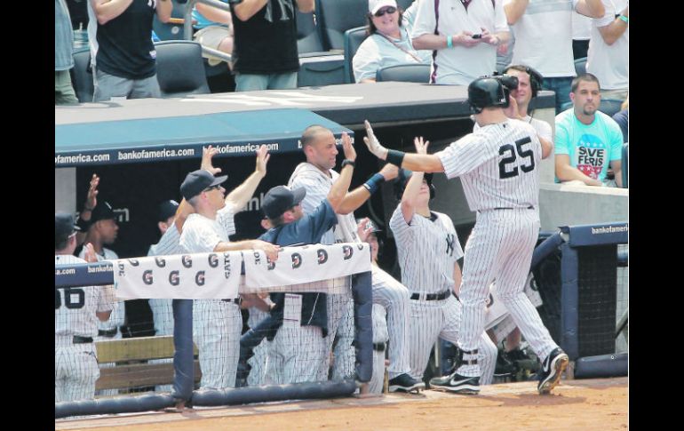 Deportes | Nueva York blanquea a los Azulejos por marcador de 6-0 Los Yanquis barren a Toronto Nueva York blanquea a los Azulejos por marcador de 6-0 Por: EL INFORMADOR 19 de julio de 2012 - 03:13 hs Bien hecho. Mark Teixeira es felicitado por sus compañeros en el dugout. AFP / GUADALAJARA, JALISCO (19/JUL/2012).- Hiroki Kuroda lanzó pelota de cuatro hits, Mark Teixeira conectó un jonrón de dos carreras durante un racimo de cuatro anotaciones en el primer inning y los Yanquis de Nueva York completaron una barrida sobre los Azulejos de Toronto al blanquearlos por 6-0 en un encuentro abreviado por la lluvia. El juego se dio por concluido luego de una interrupción de 58 minutos, antes de que los Yanquis salieran a batear en la séptima. Nick Swisher y Andruw Jones conectaron sendos hits productores en el primer acto, mientras que Dewayne Wise remolcó dos carreras en una inusual actuación de inicio con Nueva York. Los Yanquis endilgaron a Ricky Romero su quinta derrota consecutiva, la peor racha en su carrera, y superaron a Toronto por octava ocasión seguida en el Bronx. Los Azulejos no sólo terminaron la jornada dos juegos abajo de la marca de .500 por primera vez en la campaña. Llegarán a Boston diezmados por dos lesiones. Brett Lawrie se llevó un golpe en la pantorrilla derecha, al saltar sobre una cerca en busca de atrapar un elevado de foul en el tercer inning. El dominicano José Bautista sufrió un tirón en una muñeca al hacer un swing el lunes por la noche y debió ingresar a la lista de los lesionados por 15 días. Kuroda (9-7) permitió un sencillo en la segunda, quinta, sexta y séptima entrada pero no dio más libertades. Pittsburgh 9 Colorado 6 El dominicano Pedro Alvarez conectó uno de los cuatro jonrones de Pittsburgh, Garrett Jones aportó tres hits, incluido otro “bambinazo”, y los Piratas vencieron 9-6 a los Rockies de Colorado. James McDonald sobrevivió a cinco entradas difíciles, en un duelo en que Rod Barajas y Casey McGehee sonaron también sendos vuelacercas por los Piratas, que ganaron dos de tres juegos de la serie a los Rockies. Dexter Fowler y el venezolano Carlos González batearon cuadrangular, mientras que Andrew Brown pegó tres inatrapables. Dodgers 5 Filadelfia 3 Matt Kemp disparó un jonrón de dos carreras en la duodécima entrada, para que los Dodgers de Los Angeles se impusieran por 5-3 a los Filis de Filadelfia, en un partido que duró 4 horas 25 minutos. El zurdo novato Jake Diekman (2-0) regaló el boleto a Mark Ellis con un out, y Kemp encontró una pelota con cuenta de 1-0 para enviarla al otro lado de la cerca, hasta las butacas que se encuentran entre el jardín derecho y el central. Fue su jonrón 13 en la campaña y el sexto con el que ha puesto fin a un encuentro en su carrera. Jamey Wright (4-2), el sexto lanzador de los Dodgers, trabajó durante un inning para llevarse la victoria, que puso freno a una racha de cuatro tropiezos seguidos de los Dodgers. Temas Beisbol MLB Yankees de Nueva York Lee También ¿Dónde ver EN VIVO la Serie Mundial Dodgers vs Blue Jays? Charros gana un juego lleno de drama, apagones y lluvia en Mexicali Charros apadrinan a 35 academias deportivas en Jalisco México vuelve a tener presencia en la Serie Mundial con un nuevo representante Recibe las últimas noticias en tu e-mail Todo lo que necesitas saber para comenzar tu día Registrarse implica aceptar los Términos y Condiciones