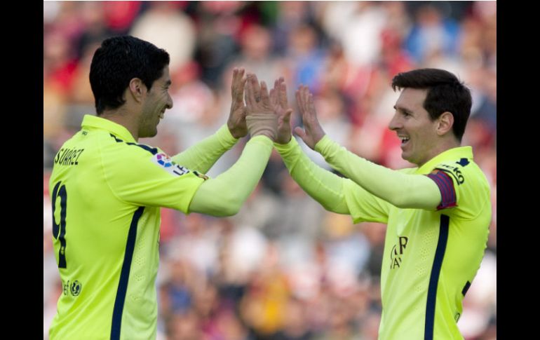 Deportes | Neymar se perderá duelo ante el Rayo Vallecano por quinto cartón amarillo Luis Suárez protagoniza triunfo del Barcelona ante el Granada Neymar se perderá duelo ante el Rayo Vallecano por quinto cartón amarillo Por: NTX 28 de febrero de 2015 - 12:03 hs Lionel Messi celebra su anotación con su compañero de equipo Luis Suárez. AFP / J. Guerrero BARCELONA, ESPAÑA (28/FEB/2015).- El delantero uruguayo Luis Suárez se convirtió en el protagonista del duelo entre Barcelona y Granada, este sábado en el Estadio Nuevo Los Cármenes, donde los pupilos de Luis Enrique Martínez lograron la victoria 3-1. Con un gol al minuto 48 y una asistencia para la definición, el sudamericano rescató al conjunto blaugrana de un incómodo partido donde el rival apretó al segundo lugar de la clasificación. En el arranque de la jornada sabatina de la fecha 25 de la Liga española, Barcelona logró su objetivo de presionar al líder Real Madrid en la lucha por la cima de la clasificación. El croata Ivan Rakitic fue el encargado de abrir el marcador al minuto 25 para presionar al conjunto local que apretó hasta el último momento, pero fue Suárez quien tras el descanso dio el respiro a los blaugranas con la segunda anotación al 48. Con el gol, Suárez confirmó su buen paso por el club, que al minuto 53 vio rebasada su meta con la anotación de Francisco Rico, quien dio a su afición la esperanza de un empate, o mejor aún, una remontada. No obstante, Suárez silenció el estadio cuando al 70 asistió al argentino Lionel Messi para que concretara la victoria y dejara al equipo con la posibilidad de alcanzar la cima de la general y al conjunto merengue con la presión de no fallar mañana cuando reciba al Villarreal. La mala noticia para el técnico Luis Enrique es que no podrá contar con el atacante brasileño Neymar, debido a que en el minuto 55 recibió su quinto cartón amarillo en el certamen, al cometer una falta por detrás sobre Nyom, que lo dejará fuera del próximo duelo ante el Rayo Vallecano. Temas Futbol Español Futbol Internacional Barcelona Lionel Messi Neymar Luis Suárez Lee También Muere Miguel Ángel Russo, entrenador de Boca Juniors Futbol hoy 9 de octubre de 2025: ¿Dónde ver los partidos en vivo? IberoMedia Global realiza su primer Encuentro Empresarial Internacional Luis Munguía destaca resultados históricos en su primer informe de gobierno Recibe las últimas noticias en tu e-mail Todo lo que necesitas saber para comenzar tu día Registrarse implica aceptar los Términos y Condiciones