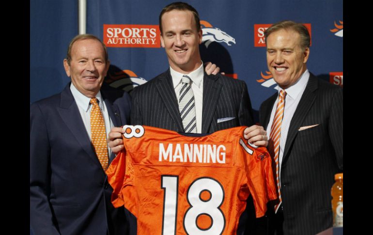 Deportes | Peyton fue presentado ante los medios de comunicación y luce confiado Manning, el nuevo mariscal de los Broncos de Denver Peyton fue presentado ante los medios de comunicación y luce confiado Por: AP 20 de marzo de 2012 - 13:28 hs El mariscal de campo firmó un contrato por cinco años y 96 millones de dólares. REUTERS / DENVER, COLORADO (20/MAR/2012).- Peyton Manning fue presentado el martes como el nuevo quarterback de los Broncos de Denver, una posición que alguna vez jugó John Elway, el ahora vicepresidente del equipo que encabezó la negociación para fichar al cotizado agente libre. "Estoy muy emocionado por comenzar el próximo capítulo de mi carrera deportiva con los Broncos de Denver", dijo Manning tras mostrar su nueva camiseta color naranja con su número 18. El quarterback firmó un contrato por cinco años y 96 millones de dólares. Manning fue dado de baja hace poco por los Potros de Indianápolis y se convirtió probablemente en el mejor agente libre en la historia de la NFL. Tennessee y San Francisco fueron los otros finalistas en la puja por el mariscal. Manning realizó audiciones la semana pasada para los Broncos, Titanes y 49ers, y los tres equipos quedaron convencidos de que se recuperó de las cirugías en el cuello que lo obligaron a perderse la temporada de 2011. Temas NFL Futbol Americano Broncos de Denver Lee También México vs. Argentina: Hora de alzar el pecho La sinfonía teutona suena en Sinsheim Futbol hoy 11 de octubre de 2025: ¿Dónde ver los partidos en vivo? Mbappé brilla en su regreso a París Recibe las últimas noticias en tu e-mail Todo lo que necesitas saber para comenzar tu día Registrarse implica aceptar los Términos y Condiciones
