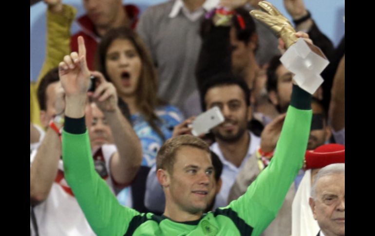 Deportes | El alemán es reconocido como el mejor portero de la Copa del Mundo Manuel Neuer se queda con el 'Guante de oro' El alemán es reconocido como el mejor portero de la Copa del Mundo Por: NTX 13 de julio de 2014 - 16:58 hs Manuel Neuer se mostró imbatible en cuatro partidos. AP / CIUDAD DE MÉXICO (13/JUL/2014).- El alemán Manuel Neuer, quien mantuvo en cero su arco en la final de la Copa del Mundo Brasil 2014, fue reconocido con el "Guante de oro" al mejor portero de la justa deportiva. Luego de siete partidos, Neuer apenas recibió cuatro dianas de tres equipos (dos de Ghana, una de Argelia y otra de Brasil) y en cuatro partidos se mostró imbatible. En la justa de Estados Unidos 1994, el belga Michel Preudhomme fue reconocido con el "Premio Lev Yashin", como fue nombrado el premio desde que se entregó por primera ocasión en ese año. Iker Casillas, campeón con la Selección de España en Sudáfrica 2010, se quedó con el ahora conocido como "Guante de Oro" tras suceder en el trono al italiano Gianluigi Buffon, quien se proclamó monarca con su selección en Alemania 2006. Ganadores del "Guante de oro": Estados Unidos 1994 Michel Preudhomme (BEL) Francia 1998 Fabien Barthez (FRA) Corea-Japón 2002 Oliver Kahn (ALE) Alemania 2006 Gianluigi Buffon (ITA) Sudáfrica 2010 Iker Casillas (ESP) Brasil 2014 Manuel Neuer (ALE) Temas Futbol Internacional FIFA Selección de Alemania Mundial Brasil 2014 Lee También Águilas vs Charros de Jalisco • Momentos Destacados • Juego 2 de la la serie inaugural de la LMP ¿Dónde ver EN VIVO el partido de J13 San Luis vs Atlas? México, entre países que han comprado más boletos para el Mundial 2026 ¿Dónde ver EN VIVO el partido de J13 Tigres vs Necaxa? Recibe las últimas noticias en tu e-mail Todo lo que necesitas saber para comenzar tu día Registrarse implica aceptar los Términos y Condiciones