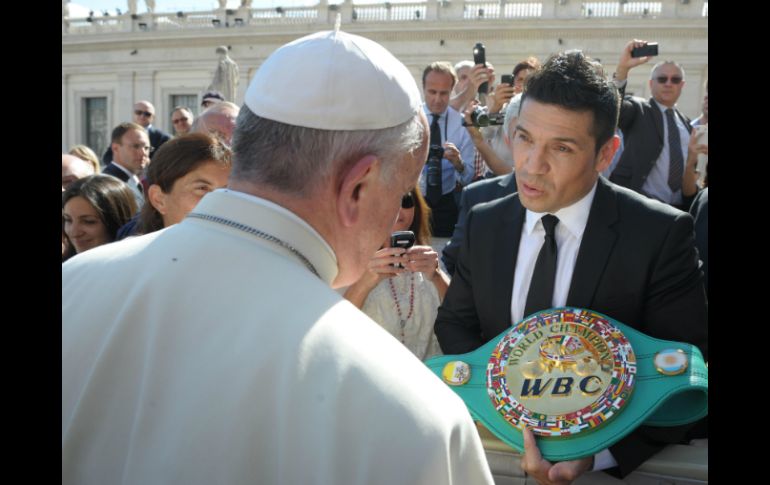 Deportes | El campeón mediano del CMB acude al Vaticano y da un obsequio al Sumo Pontífice 'Maravilla' Martínez visita al Papa Francisco El campeón mediano del CMB acude al Vaticano y da un obsequio al Sumo Pontífice Por: EL INFORMADOR 16 de octubre de 2013 - 10:17 hs Este es el momento en que Sergio otorga a Su Santidad, uno de sus tesoros. AFP / CIUDAD DEL VATICANO (16/OCT/2013).- Varios deportistas han realizado el viaje para estar cerca de Su Santidad. Hoy tocó el turno al boxeador Sergio 'Maravilla' Martínez, campeón mediano del Consejo Mundial de Boxeo ( CMB). Sergio, quien según declaró al diario ''Clarín'' de su país natal, Argentina, ha realizado dos de sus mayores sueños como católico. Uno en México al visitar la Basílica de Nuestra Señora de Guadalupe y el otro, ser recibido por la máxima autoridad mundial de la Iglesia Católica. Martínez tuvo el detalle de obsequiar al Papa su cinturón verde y oro del Consejo Mundial de Boxeo, mismo del que es campeón vigente. Además, 'Maravilla' apuntó que pedirá al Sumo Pontífice su bendición para los boxeadores, luego de haber charlado unos minutos con él. Martínez tiene una lesión en la mano izquierda desde su último combate, misma que le impedirá regresar a pelear hasta el año próximo. La selección argentina, la italiana y algunos directivos del club San Lorenzo de Almagro han también acudido a audiencias en El Vaticano. El Papa Francisco ha expresado abiertamente su afición a los deportes, del club azulgrana incluso tenía varios años como socio activo. EL INFORMADOR / ANA BETANCOURT Temas Box Boxeo Papa Francisco Lee También Peleas de box hoy sábado 18 de octubre: horarios y dónde ver la cartelera completa Nuevo diseño del ring, ¿adiós boxeo aburrido? Papa León XIV alerta sobre el uso del hambre como arma y llama a la acción mundial Revancha entre Canelo Álvarez y Terence Crawford sigue en el aire Recibe las últimas noticias en tu e-mail Todo lo que necesitas saber para comenzar tu día Registrarse implica aceptar los Términos y Condiciones