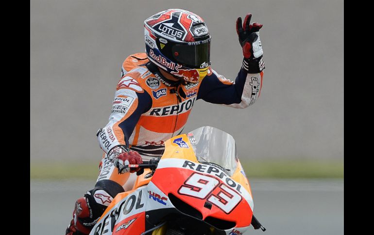 Deportes | El español Marc Márquez es nuevo líder del mundial Moto GP Márquez suma su segunda victoria del año El español Marc Márquez es nuevo líder del mundial Moto GP Por: EFE 14 de julio de 2013 - 06:54 hs Márquez ya tiene dos puntos de ventaja sobre Dani Pedrosa. AP / SACHSENRING, ALEMANIA (14/JUL/2013).- El español Marc Márquez (Repsol Honda RC 213 V) consiguió su segunda victoria del año en el Gran Premio de Alemania de MotoGP que se disputó en el circuito de Sachsenring y es el nuevo líder del mundial con dos puntos de ventaja sobre su compañero de equipo, el lesionado Dani Pedrosa. Temas Motociclismo Moto GP Lee También Fermín Aldeguer conquista el GP de Indonesia y entra en la historia de MotoGP Retiran motos y autos por rodadas clandestinas en Guadalajara ¿A qué hora es y dónde ver EN VIVO el GP de Singapur 2025 de F1? Pecco gana y Marc se corona campeón en Japón Recibe las últimas noticias en tu e-mail Todo lo que necesitas saber para comenzar tu día Registrarse implica aceptar los Términos y Condiciones
