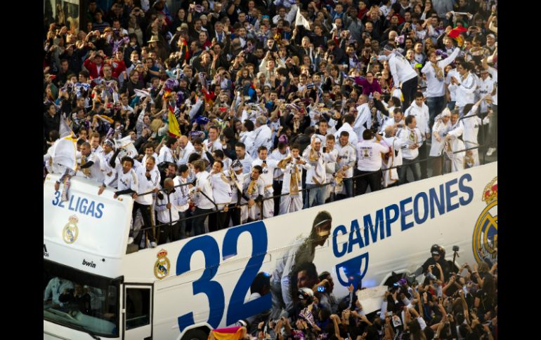 Deportes | Los jugadores fueron recibidos con el tema 'We are the champions' en plaza española Más de 25 mil aficionados celebran al Real Madrid Los jugadores fueron recibidos con el tema clásico 'We are the champions' en la plaza española Cibeles por más de 25 mil aficionados Por: EFE 3 de mayo de 2012 - 14:00 hs MADRID, ESPAÑA (03/MAY/2012).- La plantilla del Real Madrid celebró hoy su trigésimo segundo título de liga junto a más de 25 mil seguidores que se apostaron entre el estadio Santiago Bernabeu y la Plaza de Cibeles, donde el capitán, Iker Casillas, impuso a la estatua de la diosa la bufanda del club. Un fuerte chaparrón no arredró a los seguidores madridistas, que en número superior a los 25 mil, según fuentes de la Policía Municipal, contempló el paso del autobús con los jugadores desde el estadio Santiago Bernabeú hasta el lugar donde el equipo festeja sus grandes éxitos. El tema de Queen "We are the champions", sonando a todo volumen por los altavoces, recibió a los jugadores en Cibeles, donde les esperaba una multitud de aficionados que agitaban sus banderas y bufandas entre nubes de confeti. Sobre la pasarela metálica que circundaba la fuente, los jugadores bailaron y saludaron a los aficionados antes de que el capitán, Iker Casillas, subiera por una escalera preparada al efecto hasta la estatua de la diosa Cibeles para colocarle, como es tradicional, una bufanda del equipo en torno al cuello. "Ha sido una Liga muy difícil, muy sufrida, pero al final la hemos conseguido por toda esta gente que está aquí, que se lo merece todo", señaló Casillas, que con gestos prometió regresar el próximo año con la décima Copa de Europa. Igualmente eufórico se mostró el portugués Cristiano Ronaldo, que quiso compartir con los aficionados su alegría por la conquista de su primer título liguero con el Real Madrid. "La sensación es de mucha felicidad. Es mi primera Liga en España y creo que el equipo y toda esta gente se la merecía. Hemos hecho un año espectacular, el equipo ha estado muy bien y nos merecíamos esta Liga", indicó Cristiano Ronaldo. Los jugadores abandonaron la plataforma coreando el "campeones, campeones, oé, oé, oé" y, enlazados en una locomotora humana, después de festejar el título durante media hora con los congregados, regresaron al autobús para abandonar la plaza. La comitiva había partido a las 19.00 horas del estadio Santiago Bernabeu a bordo de un autobús para dirigirse a Cibeles. El autobús blanco, con matrícula R-Madrid, llevaba inscrito el lema "Campeones, 32 ligas" junto al escudo del club y una foto de los jugadores festejando un gol en la carrocería. Además del técnico, el portugués Jose Mourinho, y de los jugadores, viajaban en el autobús, al principio bajo la lluvia, los miembros del equipo técnico y del cuadro médico del club. El Real Madrid se aseguró el título de liga al vencer este miércoles por 0-3 en su visita al Athletic Club, resultado que le daba, a falta de dos partidos, siete puntos de ventaja sobre el Barcelona, campeón los tres últimos años. Temas Futbol Español Futbol Internacional Real Madrid Lee También Futbol hoy 12 de octubre de 2025: ¿Dónde ver los partidos en vivo? Nos quedamos con sensaciones cortas: Eduardo Arce Hay jugadores que no estuvieron a la altura: Javier Aguirre César Montes intenta justificar la goleada ante Colombia Recibe las últimas noticias en tu e-mail Todo lo que necesitas saber para comenzar tu día Registrarse implica aceptar los Términos y Condiciones