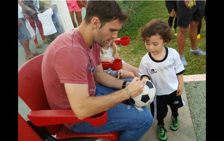 PLAYA DEL CARMEN, QUINTANA ROO (08/DIC/2016).- El delantero argentino del León, Mauro Boselli, hizo un espacio en sus vacaciones para realizar una visita sorpresa a la escuela de futbol del Inter Playa del Carmen.El ariete sudamericano se encuentra de descanso en la Riviera Maya pero esta tarde sorprendió a los niños que entrenan en la Unidad Deportiva Mario Villanueva Madrid, en esta ciudad.El romperredes de los "Panzas Verdes" firmó autógrafos y posó para las fotos, además de regalar sonrisas y palabras a jóvenes futbolistas del Interplaya.En esta visita, lo acompañaron Armando Lozano y Daniel Mora, coordinadores de las Fuerzas Básicas del Interplaya.Cada firma tenía un detalle de Boselli, llamando la atención cuando le firmó a Ángel su playera del Boca Juniors y dijo "Ahh es la de Palermo, venga" y la firmo, al recordar su paso por el Boca, así como el rechazo a regresar la organización Xeneize por continuar haciendo historia en León.Por su parte, Iris Mora, gerente deportiva del Interplaya recibió en el estadio Mario Villanueva a Boselli y lo guió en el recorrido al inmueble."Esta firma de autógrafos con nuestros pequeños y más proyectos tenemos para que la afición regrese al estadio y disfrute de su equipo, que se sienta orgulloso de ser parte del Inter", añadió.Mauro Boselli estará una semana de vacaciones por la Riviera Maya, lo acompaña su familia.La fiesta en el Mario Villanueva terminó con la foto del recuerdo del equipo infantil con Mauro Boselli, así como con Iris Mora junto al escudo del Inter Playa del Carmen.