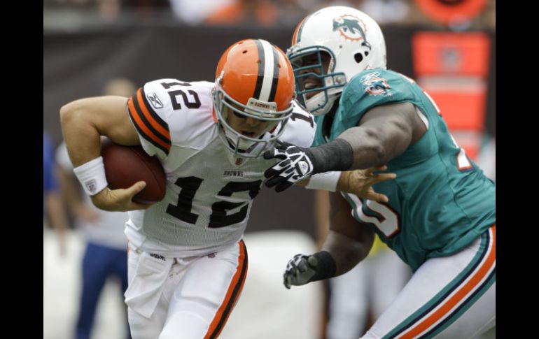Deportes | El jugador de los Cafés lanzó un touchdown que les valió el triunfo sobre Miami McCoy se redime al final y vence a los Delfines El jugador de los Cafés lanzó un touchdown que les valió el triunfo sobre Miami Por: AP 25 de septiembre de 2011 - 16:18 hs El defensa de los Delfines, Kendall Langford, (D) presiona a McCoy durante el juego. AP / CLEVELAND, OHIO (25/SEP/2011).- Colt McCoy se guardó lo mejor para el final el domingo al lanzar un pase de touchdown de 14 yardas a Mohamed Massaquoi cuando restaban 43 segundos tras una marcha de 80 yardas y los Cafés de Cleveland vencieron 17-16 a los Delfines de Miami. La derrota traerá aún más presión al entrenador de los Delfines Tony Sparano, que no ha ganado en tres partidos de esta campaña. McCoy completó nueve de 13 pases para 80 yardas en el último avance de Cleveland y compensó así una actuación pálida e imprecisa. En un tercer intento y cinco, McCoy amagó un pase antes de lanzar un balón bombeado perfecto a la esquina derecha a Massaquoi por encima del cornerback novato Jimmy Wilson. Los Cafés (2-1) luego aguantaron un intento final de remontada de Miami cuando el safety Mike Adams interceptó a Chad Henne con 13 segundos en el reloj. Los Delfines (0-3) enfrentan ahora dos partidos más como visitantes. Temas NFL Futbol Americano Delfines de Miami Cafés de Cleveland Recibe las últimas noticias en tu e-mail Todo lo que necesitas saber para comenzar tu día Registrarse implica aceptar los Términos y Condiciones