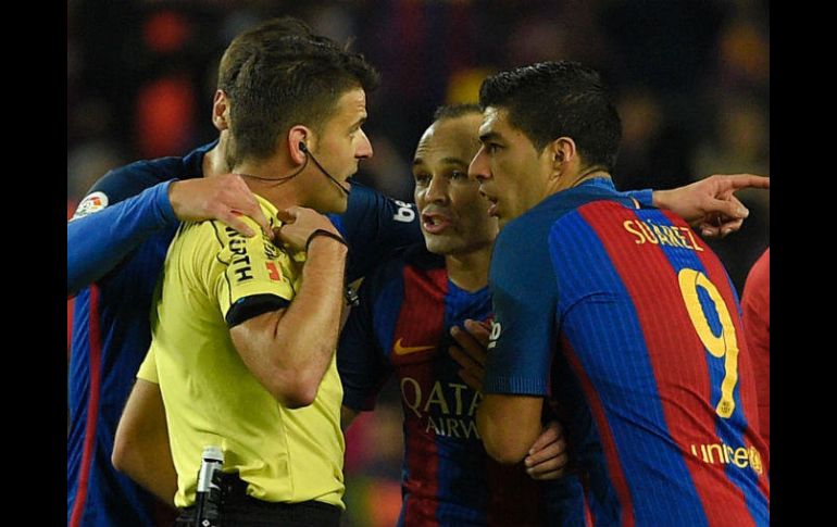 MADRID, ESPAÑA (07/FEB/2017).- Luis Suárez, delantero del Barcelona, dijo este martes después de ser expulsado ante el Atlético de Madrid que se ríe de la expulsión que vio durante el encuentro de vuelta de la Copa del Rey y afirmó que espera que su club apele la decisión arbitral para poder jugar la final."Me río (de la expulsión) porque parece que era lo que quería porque cuando salto, me doy la vuelta. Y creo que a ver si es justo que puedan apelar la segunda amarilla porque ni siquiera es falta. A ver qué puede pasar porque ya se sabe cómo va. La primera tarjeta es la primera falta y me la sacan. No hago absolutamente nada, de ahí la indignación", dijo en Gol Tv.El jugador uruguayo resaltó que el Barcelona tuvo que trabajar duro para alcanzar la final y recordó que los partidos ante el Atlético de Madrid siempre son "sufridores". "Lo conseguimos, estamos en la final", concluyó.