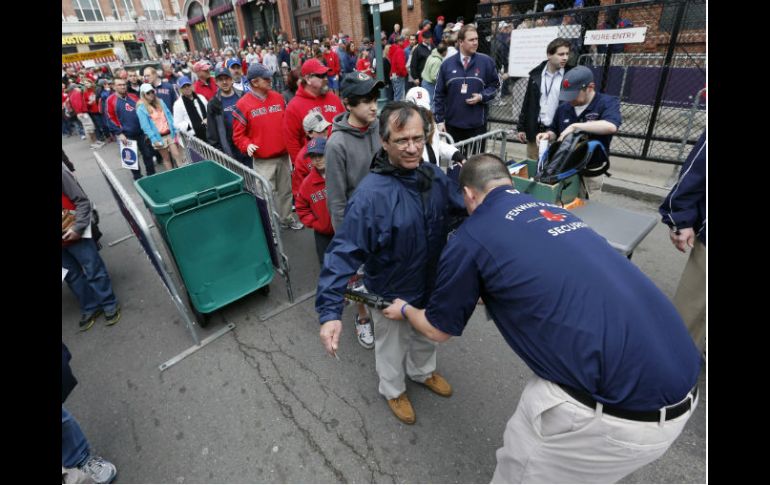 Deportes | Un policía vigila la entrada al camerino de los vistantes Medias Rojas y Bruins vuelven a las canchas Un policía de operaciones tácticas vigila la entrada que conduce al camerino del equipo visitante Por: AP 20 de abril de 2013 - 10:37 hs Muchos aficionados usan camisetas alusivas al Maratón de Boston. AP / BOSTON, MASSACHUSETTS (20/ABR/2013).- La seguridad fue estrictica el sábado en el estadio Fenway Park, donde los Medias Rojas regresaron al terreno por primera vez desde el atentado del lunes en el Maratón de Boston. Los Medias Rojas tenían previsto enfrentar a los Reales de Kansas City desde las 1:10 p.m. (1710 GMT). Al otro lado de la ciudad, los Bruins jugaron en el TD Garden contra los Penguins de Pittsburgh en un duelo de la NHL. En Fenway, un policía de operaciones tácticas, con un perro pastor alemán, vigiló la entrada que conduce al camerino del equipo visitante, unas dos horas y media antes del partido. Un militar revisó los casilleros de todos los jugadores de los Reales, al igual que muchas grietas en el techo. Afuera, los fanáticos esperaron para ingresar y muchos usaban camisetas alusivas al Maratón de Boston. Temas Beisbol Atentados Medias Rojas de Boston Recibe las últimas noticias en tu e-mail Todo lo que necesitas saber para comenzar tu día Registrarse implica aceptar los Términos y Condiciones