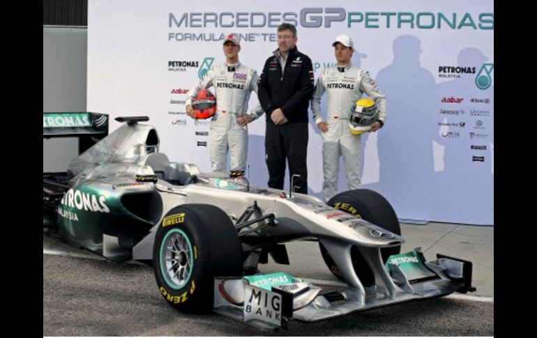 Deportes | La escudería dio a conocer el coche de 2011 con el que competirán Schumacher y Rosberg Mercedes presenta su nuevo monoplaza La escudería ha dado a conocer el coche de 2011 con el que competirán Schumacher y Rosberg Por: EFE 1 de febrero de 2011 - 11:23 hs Los pilotos de Mercedes GP Petronas, Michael Schumacher (i) y Nico Rosberg (d), y el director del equipo Ross Brawn. EFE / CHESTE, ESPAÑA (01/FEB/2011).-.La escudería Mercedes GP ha lanzado hoy oficialmente, en Cheste (Valencia), el monoplaza W02 MGP con el que competirán los alemanes Michael Schumacher y Nico Rosberg en el Mundial de 2011 de Fórmula Uno. Mercedes ha presentado su nuevo monoplaza antes del inicio de los primeros entrenamientos de pretemporada de F-1, que comienzan hoy en el circuito de la Comunidad Valenciana-Ricardo Tormo y se prolongarán hasta el jueves próximo. Las características más destacas del nuevo coche son los cambios en la entrada de aire al motor y la modificación del pontón lateral, pero sobre todo la inclusión de un morro más alto, al igual que en la mayoría de los diseños de los coches de 2011. A la tonalidad plata predominante en Mercedes se ha unido una mayor presencia del verde, color distintivo de su patrocinador principal, Petronas. Tras la pobre temporada de 2010, en la que compitió por primera vez al cobijo de Mercedes, Ross Brawn, jefe de la escudería ha mostrado su confianza en que el W02 sea mucho más efectivo después de haber iniciado su desarrollo muy pronto una vez se supo durante la pasada temporada que el W01 no era competitivo. Mañana miércoles Rosberg estará al volante del monoplaza y el jueves, último día de los primeros entrenamientos colectivos del año Fórmula Uno, será Schumacher el encargado de rodar con el W02 por la pista del trazado valenciano. Temas Automovilismo Fórmula 1 Lee También Arranca el GP de Estados Unidos 2025 con formato Sprint ¿A qué hora es y dónde ver EN VIVO el GP de EU 2025 de F1? En tele abierta y de paga: Televisa transmitirá la F1 en México Mercedes anuncia cuál será el futuro de sus pilotos en la F1 Recibe las últimas noticias en tu e-mail Todo lo que necesitas saber para comenzar tu día Registrarse implica aceptar los Términos y Condiciones