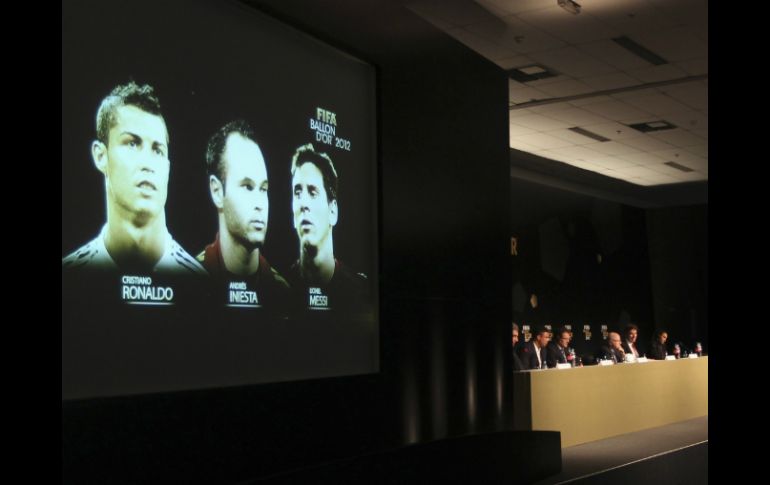 Deportes | Radamel Falcao, Sergio Agüero y Neymar fuera de la competencia Messi, Cristiano e Iniesta, los finalistas al Balón de Oro Lionel Messi, Cristiano Ronaldo y Andrés Iniesta son los tres candidatos finales al Balón de Oro 2012 Por: EL INFORMADOR 29 de noviembre de 2012 - 06:52 hs Ronaldo, Iniesta y Messi (i a d) fueron anunciados como candidatos al galardón en una rueda de prensa. REUTERS / SAO PAULO, BRASIL (29/NOV/2012).- El argentino Lionel Messi (Barcelona), el portugués Cristiano Ronaldo (Real Madrid) y el español Andrés Iniesta (Barcelona) son los tres candidatos al Balón de Oro 2012 anunciados hoy en Sao Paulo por la FIFA. Messi, ganador de las tres últimas ediciones del Balón de Oro, vuelve a figurar como favorito en una nueva disputa con Cristiano Ronaldo, que lo logró en 2008. Además de Messi, otros tres latinoamericanos aspiraban al galardón: el colombiano Radamel Falcao; el argentino Sergio Agüero y el brasileño Neymar, único futbolista de la lista que no juega en Europa. También figuraban Mario Balotelli (Italia), Karim Benzema (Francia), Drogba (Costa de Marfil), Ibrahimovic (Suecia), Özil (Alemania), Pirlo (Italia), Rooney (Inglaterra), Yaya Touré (Costa de Marfil), Robin Van Persie (Holanda) y los porteros Buffon (Italia) y Neuer (Alemania). El nombre del ganador será conocido en una ceremonia de gala de la FIFA el próximo 7 de enero en Zúrich (Suiza). Con información de Efe Temas Balón de Oro Futbol Internacional FIFA Cristiano Ronaldo Lionel Messi Lee También México listo para un nuevo desafío en el Mundial Sub-17 Femenil Hamás dice que recibió garantías de que la guerra en Gaza terminó Todas las selecciones que han calificado al Mundial 2026 hasta hoy Argelia clasifica para el Mundial 2026 Recibe las últimas noticias en tu e-mail Todo lo que necesitas saber para comenzar tu día Registrarse implica aceptar los Términos y Condiciones