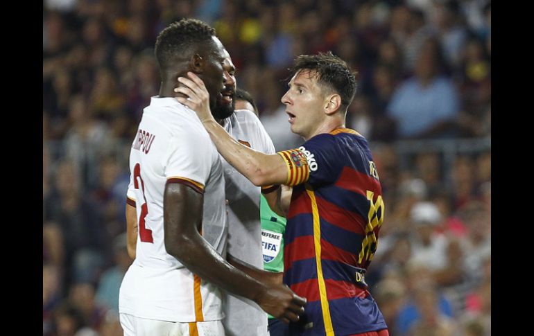 Deportes | El jugador argentino se 'prende' luego de una acción con Mapou Yanga-Mbiwa Messi agrede a un jugador de la Roma El jugador argentino se 'prende' luego de una acción con Mapou Yanga-Mbiwa Por: EL INFORMADOR 5 de agosto de 2015 - 16:45 hs BARCELONA, ESPAÑA (05/AGO/2015).- Lionel Messi perdió el control durante el juego por la Copa Joan Gamper, en el Camp Nou de Barcelona, al propinar un cabezazo al jugador francés Mapou Yanga-Mwiba, de la Roma. Corría el minuto 33 del partido cuando se marcó una falta en una llegada del cuadro catalán. La pelota llegó a Messi, éste, en los últimos segundos de la jugada pasó junto a Mapou y cuando regresó se hizo de palabras. En ese momento, Messi tomó del cuello al defensor del cuadro italiano y le propinó un cabezazo. Rápidamente los jugadores de la Roma y Barcelona intervinieron para evitar llegar a más el hecho, pero el árbitro aplicó tarjeta de amonestación para ambos jugadores, aunque en la repetición no se vio falta alguna del francés sobre el argentino. Temas Futbol Internacional Barcelona Lionel Messi AS Roma Partidos amistosos Lee También Liga MX: Horarios y canales de los partidos del 18 de octubre Gael García combate el miedo a través del cine Futbol hoy 18 de octubre de 2025: ¿Dónde ver los partidos en vivo? Olivia Harrison y la memoria de The Beatles Recibe las últimas noticias en tu e-mail Todo lo que necesitas saber para comenzar tu día Registrarse implica aceptar los Términos y Condiciones