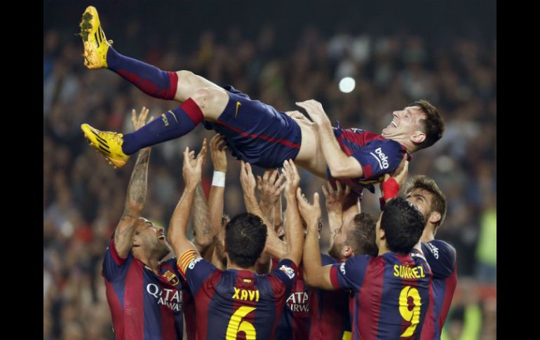 Deportes | El argentino llega a 253 goles en su carrera con el Barcelona Messi bate récord de Zarra El argentino llega a 253 goles en su carrera con el Barcelona Por: AP 22 de noviembre de 2014 - 13:56 hs Compañeros del Barcelona celebran con Messi su nuevo récord en la liga española. EFE / A. Dalmau BARCELONA, ESPAÑA (22/NOV/2014).- Lionel Messi batió el récord de Telmo Zarra y se convirtió en el máximo goleador en la historia de la liga española, al marcar tres veces el sábado por el Barcelona ante el Sevilla. El astro argentino llegó a 253 conquistas en sus 10 años como jugador del Barsa, superando por dos el récord del ex delantero del Athletic de Bilbao. Messi tiene 10 goles en este campeonato. Messi igualó la marca a los 21 minutos con un magistral tiro libre, se quedó con el récord en solitario con un contragolpe a los 72, y metió el tercero del partido a los 78. El Barsa ganaba 5-1 al Sevilla. El ariete fijó la marca en 289 partidos, mientras que Zarra lo hizo en 271 entre 1940-55. Temas Futbol Español Futbol Internacional Barcelona Lionel Messi Sevilla FC Lee También Futbol hoy 16 de octubre de 2025: ¿Dónde ver los partidos en vivo? Atlas Femenil paga caro un error y ve alejarse la Liguilla ante América Cada partido será una final para nosotros: Diego Cocca México encadena cuatro partidos sin ganar, algo que no sucedía desde 2021 Recibe las últimas noticias en tu e-mail Todo lo que necesitas saber para comenzar tu día Registrarse implica aceptar los Términos y Condiciones