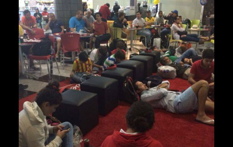 Deportes | Son alrededor de 500 aficionados mexicanos que tienen 48 horas en espera Mexicanos no pueden salir de Recife Son alrededor de 500 aficionados mexicanos que tienen 48 horas en espera Por: EL INFORMADOR 25 de junio de 2014 - 14:36 hs Todos deambulan por el aeropuerto esperando la solución a sus vuelos, sin recursos para alimentarse. ESPECIAL / GUADALAJARA, JALISCO (25/JUN/2014).- Una historia para que el consulado mexicano en Brasil, entre en acción. Y es que en facebook, la usuaria Agie Pam, denunció que en Recife hay una gran cantidad de mexicanos varados, que no han podido tomar un vuelo a México por algunos problemas y señala a Lorenzo Reyes Retana, socio de Lis Byron, dueños de Match, como los responsables, según publicó. Hasta el momento nadie se ha acercado a los tapatíos que se encuentran varados en Recife, hay incumplimiento de la empresa a la cual se le compraron los paquetes y la desesperación aumenta conforme avanza el reloj, según nos comentó Pam. “Javier escobedo (dueño de Escotours) hizo un trato con Lorenzo Reyes Retana (socio de Biron) parte de Match (la única distribuidora oficial de la FIFA en cuanto a paquetes para mundiales) y aparentemente nadie está resolviendo el asunto, Match le quedó mal a la agencia”. Son alrededor de 500 aficionados mexicanos que han estado varados 48 horas en espera de una solución. Hay personas mayores, damas, niños y niñas, que se encuentran desesperados porque ya agotaron sus recursos. La forma en la cual se están apoyando estas personas, es pidiendo ayuda con los mexicanos que se encuentran todavía en Recife, reúnen recursos para darle de comer primero a los niños y niñas, si alcanza los adultos hacen lo propio. Una de las personas que se encuentra varadqa es Xochitl Alejandra Inda Peña, de Guadalajara y al igual que el grupo, está desesperada en espera de que les ayude alguien, desde el consul de México en Brasil, hasta cualquier paisano que se encuentre allá. La empresa con la cual contrató Xochilt Inda Peña su viaje, fue con Escotours, que ha incumplido en su paquete y todos los mexicanos andan deambulando en el aeropuerto de Recife. EL INFORMADOR / ALEJANDRO RAMÍREZ Temas Futbol Internacional Mexicanos Aeropuertos Mundial Brasil 2014 Recibe las últimas noticias en tu e-mail Todo lo que necesitas saber para comenzar tu día Registrarse implica aceptar los Términos y Condiciones
