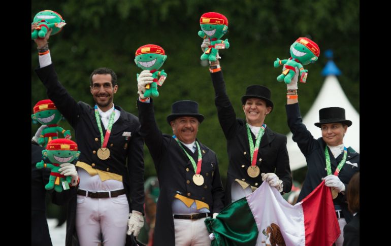 Deportes | Omar Zayrik, Mariana Quintana, Bernadette Pujals y José Padilla se llevan el título México consigue oro en adiestramiento por equipo en equitación Omar Zayrik, Mariana Quintana, Bernadette Pujals y José Luis Padilla se llevan el título con 66.789 puntos Por: NTX 17 de noviembre de 2014 - 19:03 hs El equipo domina la pruega nivel St. George, sumando una medalla más para México. MEXSPORT / D. Leah XALAPA, VERACRUZ (17/NOV/2014).- México sumó la primera medalla de oro en la equitación de los Juegos Centroamericanos y del Caribe Veracruz 2014, tras dominar la prueba de adiestramiento por equipo con una suma total de 66.789. En el Club Hípico Coapexpan, el cuadro mexicano estuvo compuesto por Omar Zayrik (Presuntuoso), Mariana Quintana (Benzema), Bernadette Pujals (Aurora el Camino) y José Luis Padilla (Donnersberg). La jinete Pujals montada en Aurora el Camino fue el mejor aporte con 70.658 de marca, en esta prueba nivel St. George, que tuvo como jueces internacionales a Marian Cunningham, Sandra Hotz, Lorraine MacDonald, Isobel Wessels y Janine Rohr. La presea de plata fue para Colombia y completó el podio Guatemala al obtener el bronce, atrás quedaron Costa Rica y Venezuela. De las cinco representaciones sólo Guatemala y Costa Rica participaron con tres binomios (jinete-caballo), mientras que el resto lo hizo con cuatro. Temas Equitación Deporte Amateur JCC Veracruz 2014 Lee También Poza Rica: Escenas dramáticas y una ciudad bajo la fuerza del río Cazones Poza Rica, inundado por desbordamiento del río Cazones Estados donde hay suspensión de clases este 8 de octubre por lluvias Modernizarán pista de BMX en Jardines Alcalde Recibe las últimas noticias en tu e-mail Todo lo que necesitas saber para comenzar tu día Registrarse implica aceptar los Términos y Condiciones