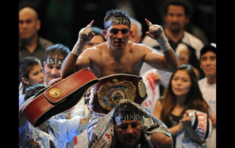 Deportes | El argentino defiende su título y derrota por nocáut técnico al mexicano Narváez derrota al mexicano García El argentino defiende su título de peso supermosca y derrota por nocáut técnico al mexicano Por: EFE 21 de octubre de 2012 - 13:31 hs El campeón Omar Narváez derrotó en el undécimo asalto al mexicano Johnny García y retuvo su título. AFP / BUENOS AIRES, ARGENTINA (21/OCT/2012).- El púgil argentino Omar Narváez retuvo esta madrugada el título de peso supermosca de la Organización Mundial de Boxeo (OMB) al derrotar por nocáut técnico en el undécimo asalto al mexicano Johnny García. El combate, que tuvo lugar en el estadio Luna Park de Buenos Aires ante unos cinco mil espectadores, había sido aplazado el miércoles pasado a causa del fallecimiento del padre del boxeador local, quien ante García defendió por quinta vez la corona. El mexicano complicó al campeón, de 37 años, en los primeros asaltos, pero fue neutralizado por la contundencia de éste con sus certeros golpes a la zona alta. En el séptimo Narváez derribó a García y pasó a dominar con amplitud la pelea, en la que el mexicano demostró más carácter que virtudes técnicas para sobrellevar un desarrollo que, a esas alturas, le era desfavorable. El árbitro puertorriqueño Roberto Ramírez Júnior descontó un punto al mexicano por un cabezazo en el octavo capítulo y después de tres caídas en el undécimo determinó la victoria de Narváez, quien dedicó la victoria a la memoria de su padre. Narváez logró el título de peso mosca de la OMB hace diez años, y lo defendió en 16 ocasiones, con lo cual superó el récord de su compatriota Carlos Monzón (14), y pasó a la categoría supermosca, cuyo título obtuvo en mayo de 2010 al derrotar al nicaragüense Everth Briceño. Temas Box Boxeo Omar Narváez OMB Lee También Naasón, Covarrubias, Omar… Harfuch y los medios Gobierno federal refuerza combate a extorsión y desapariciones Se encienden las alarmas Recibe las últimas noticias en tu e-mail Todo lo que necesitas saber para comenzar tu día Registrarse implica aceptar los Términos y Condiciones