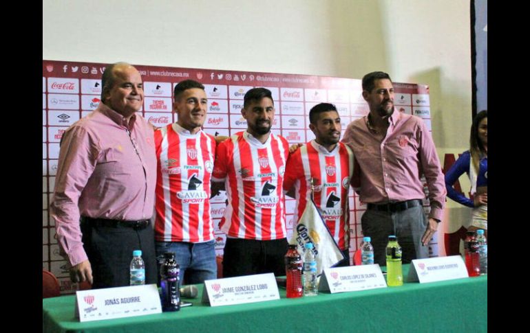 CIUDAD DE MÉXICO (28/DIC/2016).- La directiva del equipo Necaxa presentó este miércoles de manera formal a sus tres refuerzos rumbo al Torneo Clausura 2017 de la Liga MX, en el que buscarán evitar el descenso y meterse a liguilla.Con la presencia del director deportivo, Carlos López de Silanes, y del director comercial, Jaime González, se efectuó la presentación de los mediocampistas, el argentino Jonás Aguirre (Rosario Central) y el chileno Nicolás Maturana (Universidad de Chile), así como del atacante Maximiliano Barreiro (Delfín), el tridente se dijo contento y comprometido en aportar.Maturana manifestó estar “contento de llegar a este club, lo venía buscando hace tiempo. Sé que el futbol mexicano es muy competitivo, que tiene jugadores de nivel y muchos seleccionados sudamericanos”.Por lo que “será algo importante en mi carrera y esperamos hacerlo de la mejor forma para representar bien al club”, que en el Apertura 2016 alcanzó las semifinales y se alejó un poco más del tema porcentual.Aguirre reconoció que será complicado adaptarse en lo que es su primera experiencia fuera de Argentina, pero está enfocado en responder a las expectativas del club y del técnico Alfonso Sosa.“Lo principal va a ser adaptarme porque es la primera vez que salgo a jugar fuera de mi país, estar lejos de allá con otras costumbres será lo que más me va a costar”, admitió el atacante proveniente de Rosario Central.Por su lado, Maxi Barreiro externó: “Es un placer estar acá, vengo a tratar de hacer lo mismo que hice en Ecuador, sé que éste es un equipo grande de México, ver el estadio para mí es algo muy lindo, estar en esa cancha”.De tal modo que espera lograr cosas importantes como le ocurrió en Ecuador, donde fue campeón de goleo con Delfín, “trataré de copiar lo mismo que hice allá, obviamente vengo con mucha responsabilidad, con ganas de hacer las cosas bien y de sumarme al grupo de la mejor manera”.Mientras que el director deportivo necaxista subrayó que se reforzó al plantel de acuerdo a lo previsto con el cuerpo técnico encabezado por Alfonso Sosa, todo con la finalidad de alcanzar las metas marcadas.“Hoy vienen a sumarse a un proyecto donde todos somos parte importante para el club. Es lo que requiere el equipo, es lo que habíamos platicado con el cuerpo técnico y todas las áreas para fortalecer todas las metas que tenemos en este torneo”, mencionó Carlos López.