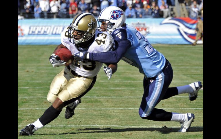 Deportes | Los Santos ganan en un partido agónico 22-17 a los Titanes Nueva Orleans sigue de racha Los Santos ganan en un partido agónico 22-17 a los Titanes Por: AP 11 de diciembre de 2011 - 15:09 hs Darren Sproles (izq) tuvo una destacada jornada. AP / NASHVILLE, TENNESSEE (11/DIC/2011).- Drew Brees lanzó el domingo dos pases de touchdown a Marques Colston en el cuarto cuarto para que los Santos de Nueva Orleans lograran su quinta victoria seguida al superar 22-17 a los Titanes de Tennessee. Los Santos, líderes de la División Sur de la Conferencia Nacional con marca de 10-3, no tuvieron problemas para sumar yardas, pero sí los encontraron para anotar hasta que Brees y Colston se conectaron con pases de 35 y 28 yardas. Los Titanes (7-6) tuvieron el balón dos veces en los minutos finales con posibilidades de ganar el encuentro. La primera vez, Nueva Orleans frenó al suplente Jake Locker en cuarta y una en la yarda 24 de los Santos, con 2:18 minutos en el reloj. La segunda, Jo-Lonn Dunbar capturó a Locker en un tercera y gol y el tiempo se acabó. Con la derrota de los Titanes, los Texanos de Houston se aseguraron la División Sur de la Conferencia Americana. Temas NFL Futbol Americano Titanes de Tennessee Santos de Nueva Orleans Recibe las últimas noticias en tu e-mail Todo lo que necesitas saber para comenzar tu día Registrarse implica aceptar los Términos y Condiciones