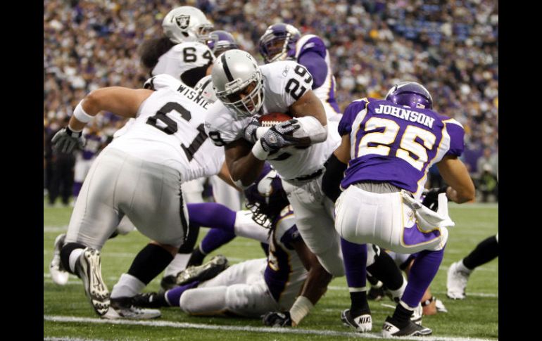 Deportes | Aprovecharon los errores del rival para vencerlos 27-21 Oakland vence por aire a Vikingos gracias a Palmer Aprovecharon los errores del rival para vencerlos 27-21 Por: AP 20 de noviembre de 2011 - 15:48 hs El corredor de los Raiders Michael Bush (29) atrapa un pase de touchdown ante el jugador de Vikingos Tyrell Johnson (25). REUTERS / MINNEAPOLIS, MINNESOTA (20/NOV/2011).- Carson Palmer lanzó para 164 yardas y un touchdown al tiempo que los Raiders de Oakland capitalizaron los errores de Minnesota para vencer el domingo 27-21 a los Vikingos. Michael Bush corrió para 109 yardas y un touchdown por los Raiders (6-4), que se llevaron un susto cuando su receiver Darrius Heyward-Bey fue retirado del terreno de juego en un carrito con una lesión en el cuello durante el último cuarto. Heyward-Bey sufrió la lesión cuando una rodilla del linebacker E.J. Henderson lo golpeó inadvertidamente en la nuca mientras era tacleado. No se pudo apreciar movimiento en sus extremidades, y de momento no hay información sobre su condición. Adrian Peterson dejó el encuentro en el segundo período con una dolencia en el tobillo izquierdo. Los Vikingos (2-8) fueron incapaces de completar una remontada en el cuarto final. Temas NFL Futbol Americano Raiders de Oakland Vikingos de Minnesota Recibe las últimas noticias en tu e-mail Todo lo que necesitas saber para comenzar tu día Registrarse implica aceptar los Términos y Condiciones