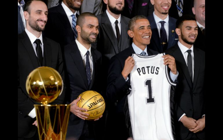 El mandatario comentó que nunca es fácil celebrar a un equipo en la Casa Blanca que no sea Bulls (de Chicago), "pero debo reconocer que los Spurs son difíciles de no querer".Debido a la formación del equipo por jugadores de varias nacionalidades, Obama expresó que son las Naciones Unidas de los equipos de baloncesto.Además destacó la labor social del club en la alfabetización y diversas acciones de desarrollo en la comunidad.El argentino Manu Ginóbili entregó al presidente estadunidense una playera del equipo con el número 1, en medio de aplausos de sus compañeros.También estuvieron presentes en la Casa Blanca, el entrenador Gregg Popovich y las estrellas Tim Duncan y Tony Parker, entre otros.