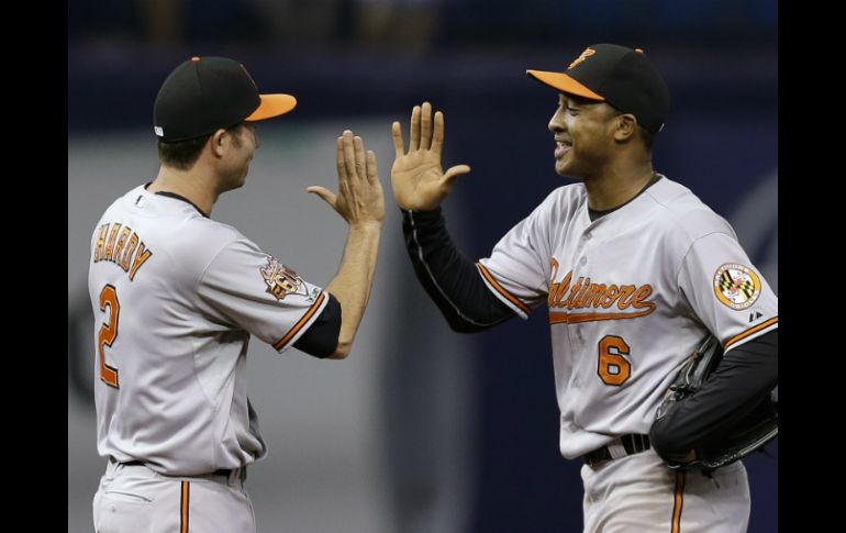 Deportes | Baltimore vence 3-1 a Tampa Bay Orioles completa barrida sobre Rays Baltimore vence 3-1 a Tampa Bay Por: AP 8 de mayo de 2014 - 21:44 hs Jugadores de Baltimore festejan su triunfo. AP / FLORIDA, ESTADOS UNIDOS (08/MAY/2014).- Steve Pearce conectó jonrón de dos carreras, el dominicano Ubaldo Jiménez ganó su segunda salida en fila y los Orioles de Baltimore completaron la barrida de tres juegos al vencer el jueves 3-1 a los Rays de Tampa Bay. El segundo cuadrangular de Pearce en tres días vino ante el derrotado David Price (3-3) luego de que J.J. Hardy conectara doblete en la segunda entrada. En la primera base en lugar del lesionado cañonero Chris Davis, Pearce también hizo una destacada jugada para quedarse con el tiro de Hardy y completar una doble matanza que puso fin a la octava entrada, en la que los Rays amenazaban con casa llena. El manager de los Rays, Joe Maddon, protestó la decisión del umpire, pero la repetición instantánea la confirmó tras una revisión de dos minutos. Nick Markakis extendió a 15 su racha de juegos seguidos con hit con un sencillo en la tercera entrada. Jiménez (2-4) lanzó cinco entradas y un tercio en los que admitió una carrera y siete imparables. Dio dos bases por bolas y ponchó a tres. En la loma por Tampa Bay, el dominicano Joel Peralta lanzó dos tercios de entrada en los que ponchó a un rival, mientras que su compatriota Juan Carlos Oviedo ponchó a dos toleteros en dos entradas de labor. Por los Orioles, los dominicanos Nelson Cruz de 4-1 y Manny Machado de 3-0. Por los Rays, el cubano Yunel Escobar de 4-1. El boricua José Molina de 2-0. Temas Beisbol Orioles de Baltimore Recibe las últimas noticias en tu e-mail Todo lo que necesitas saber para comenzar tu día Registrarse implica aceptar los Términos y Condiciones