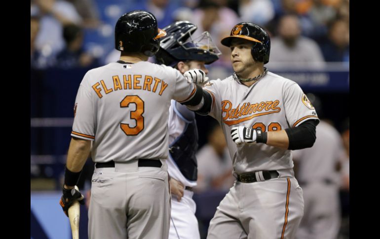 Deportes | Baltimore vence 5-3 a Tampa Bay Orioles ganan a Rays Baltimore vence 5-3 a Tampa Bay Por: AP 6 de mayo de 2014 - 21:55 hs Ryan Flaherty festeja con Steve Pearce durante el partido. AP / SAINT PETERSBURG, ESTADOS UNIDOS (06/MAY/2014).- Ryan Flaherty y Nick Markakis remolcaron una carrera cada uno, después de que un apagón interrumpió el encuentro en el octavo inning, y los Orioles de Baltimore vencieron el martes 5-3 a los Rays de Tampa Bay. La interrupción de 19 minutos ocurrió debido a que una serie de luces se apagó en el Tropicana Field, poco después de que Steve Clevenger conectó un doblete con un out ante el dominicano Joel Peralta (1-2) para colocar corredores en segunda y tercera. Después, Steve Pearce gestionó un boleto, Flaherty bateó un sencillo productor y Markakis añadió una roleta remolcadora, para dar a Baltimore una ventaja de dos carreras. Los Rays anunciaron que Duke Energy, la empresa que suministra electricidad al parque, reportó un problema provocado por un rayo que cayó en un transformador cercano. Evan Longoria pegó un vuelacerca por los Rays, que llenaron las bases en la novena entrada con un out pero no anotaron ante Tommy Hunter. El cerrador de los Orioles obligó a que Desmond Jennings bateara un elevado, y ponchó a Logan Forsythe, para conseguir su noveno rescate. Darren O'Day (1-0) se llevó el triunfo pese a permitir un globo de sacrificio de Ben Zobrist, que empató la pizarra en el séptimo capítulo. Por los Orioles, el dominicano Nelson Cruz de 5-2 con una anotada. Por los Rays, el cubano Yunel Escobar de 3-0. Temas Beisbol Orioles de Baltimore Recibe las últimas noticias en tu e-mail Todo lo que necesitas saber para comenzar tu día Registrarse implica aceptar los Términos y Condiciones