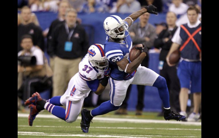 Deportes | Hilton ayuda a indianápolis para vencer a los Bills 20-13 Otra victoria de los Potros Hilton ayuda a indianápolis para vencer a los Bills 20-13 Por: AP 25 de noviembre de 2012 - 16:45 hs Reggie Wayne atrapa un pase y se escapa para ganar más yardas. AP / INDIANAPOLIS, INDIANA (25/NOV/2012).- Hilton anotó el domingo con un regreso de patada de despeje de 75 yardas y una recepción de 8 yardas, para que los Potros de Indianápolis vencieran por 20-13 a los Bills de Buffalo. Hilton es el primer jugador en la historia del equipo que anota de dos maneras diferentes en el mismo encuentro, y durante un difícil día para los Potros, el novato receptor puso la chispa que el equipo necesitaba. Con un par de movimientos ingeniosos logró quedar libre en el regreso de patada, y luego atrapó el pase de Andrew Luck en el fondo de la zona de anotación. Luck se fue con 20 completos de 37 intentos para 240 yardas con un touchdown y una intercepción. Buffalo (4-7) finalmente puso fin a su sequía en la zona roja con un pase de touchdown de 1 yarda de Ryan Fitzpatrick a Lee Smith con 11:30 por jugarse para poner el marcador 20-13. Sin embargo, los Bills no volvieron a acercarse. Temas NFL Futbol Americano Bills de Buffalo Potros de Indianápolis Lee También La NFL suspende a Brian Branch por golpear a jugador de Chiefs NFL: Resultados del Monday Night Football Futbol hoy 14 de octubre de 2025: ¿Dónde ver los partidos en vivo? Javier Aguirre asegura que realizará siete u ocho cambios ante Ecuador Recibe las últimas noticias en tu e-mail Todo lo que necesitas saber para comenzar tu día Registrarse implica aceptar los Términos y Condiciones