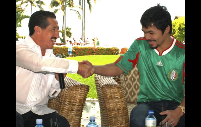 Deportes | Manny regresará a su país esta misma semana para tomar su puesto como diputado de Sarangani, Filipinas Pacquiao augura gran Mundial para México El ídolo asiático se encuentra de vacaciones en Nayarit y portando la camiseta oficial del equipo mexicano de futbol Por: NTX 9 de junio de 2010 - 02:32 hs Ney Gonzalez gobernador de Nayarit (der) y Manny Pacquiao ayer en Nayarit. JAMMEDIA / TEPIC, NAYARIT (09/JUNIO/2010).- El siete veces campéon del mundo, el filipino Manny Pacquiao, dijo estar seguro que la Selección mexicana hará un gran papel en el Mundial Sudáfrica 2010 de futbol que inicia este viernes. El ídolo asiático se encuentra de vacaciones en la Riviera nayarita y portando la camiseta oficial del equipo mexicano de futbol, mencionó este martes acompañado del promotor tijuanense Fernando Beltrán. "Mi favorito es México, estaré al pendiente de sus actuaciones, estaremos echando porras, México es como mi segundo país, los aficionados mexicanos siempre me han apoyado en mis grandes combates y lo menos que puedo hacer es darles las gracias y apoyar a su selección". Manny Pacquiao, quien disfruta de sus vacaciones acompañado de su familia, fue recibido por el gobernador del Estado de Nayarit, Ney González, y se dijo contento por estar por primera vez en nuestro país, en el que ya es un ídolo, y por la hospitalidad que han tenido para con él y sus familiares. 'Es mi primera vez en México y aunque ya me tengo que ir, ya tengo también ganas de regresar y disfrutar de México, sus lugares y su gente, que es sin duda lo mejor', dijo Pacquiao enfundado en el jersey de la selección mexicana de futbol. El gobernador nayarita destacó que la belleza de las playas en la Riviera Nayarit han despertado el interés mundial y de grandes estrellas como Pacquiao, a quien reconoció como huésped distinguido. El promotor Fernando Beltrán, titular de Promociones Zanfer, destacó los planes conjuntos que tiene con el filipino de hacer boxeo tanto en México como en su país natal, poniendo a prueba los talentos de ambos países. Manny regresará a su país esta misma semana para alistar todo para tomar su puesto como diputado de Sarangani, Filipinas, y enfilarse a una prominente carrera política. "Estoy feliz de estar por primera vez en México, un gran país lleno de cultura y bellas tradiciones, es un honor estar aquí y aceptar la invitación de mi amigo y socio Fernando Beltrán y ser recibido por el Gobernador González y el ministro de Turismo de Nayarit, estamos felices mi familia y yo" dijo Pacquiao. En una conferencia de prensa organizada por el Gobierno de Nayarit y Zanfer, Pacquiao dijo que quiere la pelea contra Floyd Mayweather para noviembre y que todo está en manos de su promotor, Bob Arum, presidente de Top Rank. "El señor Arum es mi promotor y el hará lo necesario para que la pelea se realice, por mí no tengo problema alguno y lo que Arum diga nosotros estaremos listos para pelear en noviembre", señaló el mejor boxeador libra por libra. Temas Selección mexicana Manny Pacquiao Mundial de Sudáfrica 2010 Lee También Los Charros de Jalisco se quedan con las ganas México pierde empresas y genera menos empleo Sensei rojinegro Resultados del Sorteo Zodiaco 1723 de la Lotería Nacional del 19 de octubre Recibe las últimas noticias en tu e-mail Todo lo que necesitas saber para comenzar tu día Registrarse implica aceptar los Términos y Condiciones