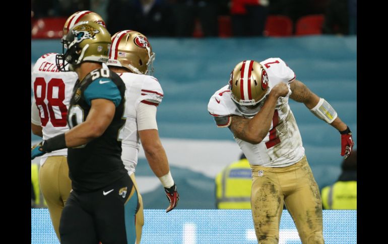 Deportes | Colin Kaepernick comanda a San Francisco en victoria 42-10 sobre Jacksonville Paliza de los 49ers sobre Jaguares en Londres Colin Kaepernick comanda a San Francisco en victoria 42-10 sobre Jacksonville Por: AP 27 de octubre de 2013 - 14:27 hs Kaepernick (D) no tuvo grandes números pero sí los suficientes para apalear a Jacksonville. AP / LONDRES, INGLATERRA (27/OCT/2013).- Con sus acarreos y sus pases, Colin Kaepernick guió el domingo a los 49ers de San Francisco hacia una paliza por 42-10 sobre los Jaguares de Jacksonville, en el estadio de Wembley, en Londres. Kaepernick lanzó pases para 164 yardas y una anotación, además corrió para 54 yardas y dos anotaciones. Frank Gore también logró dos anotaciones por vía terrestre. Los 49ers mejoraron a 6-2 con el triunfo, su quinto en fila, mientras los Jaguares siguen sin victoria y están 0-8. Fue el octavo partido de temporada regular de la NFL que se celebra en Wembley, y el segundo de esta campaña. Los Vikingos de Minnesota vencieron a los Acereros de Pittsburgh 34-27 el mes pasado. Temas NFL Futbol Americano Jaguares de Jacksonville 49ers de San Francisco Lee También Atlas busca revancha ante León en el Estadio Jalisco México se impone a Países Bajos y respira en el Mundial Sub-17 Femenil Que siempre no: el Villarreal vs Barcelona no se jugará en EU Chivas viaja a Querétaro sin dos jugadores Recibe las últimas noticias en tu e-mail Todo lo que necesitas saber para comenzar tu día Registrarse implica aceptar los Términos y Condiciones