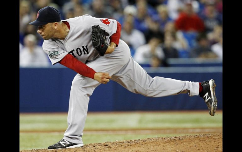 Deportes | El relevista mexicano logra su rescate 14 con Medias Rojas en GL 2012 'Patón' Aceves logra rescate para Boston El relevista mexicano logra su rescate 14 con Medias Rojas en GL 2012 Por: NTX 2 de junio de 2012 - 19:23 hs Alfredo 'Patón' Aceves está siendo un cerrador efectivo con Boston. REUTERS / TORONTO, CANADÁ (02/JUN/2012).- El lanzador mexicano Alfredo Aceves se apuntó esta tarde su rescate número 14 de la temporada 2012 de Grandes Ligas, en la victoria de Medias Rojas de Boston por 7-4 sobre Azulejos de Toronto, en el Rogers Centre de esta ciudad. El mexicano Aceves trabajó por espacio de un rollo completo, en el que se fue limpio y sin daño de parte de la ofensiva azul, y además, se dio tiempo para recetar un chocolate y salir al final con su "bomberazo" 14 de esta temporada. El ganador resultó el venezolano Félix Doubront (6-2), luego de lanzar seis rollos y un tercio, para siete imparables, tres rayitas, un boleto, siete ponches y dos jonrones tolerados. Perdió Kyle Drabek (4-6). En este cotejo, el primera base mexicano Adrián González, quien hoy también cubrió con éxito el jardín derecho, salió con la pólvora mojada, al irse en el aspecto ofensivo de 5-0. Por Medias Rojas de Boston, Nick Punto (1) pegó palo de cuatro esquinas en la novena entrada, para redondear así a números finales de 7-4. Por Azulejos, Jeff Mathis (3) en la tercera, y el dominicano José Bautista (13) en el quinto rollo, pegaron sendos cuadrangulares solitarios. Con este resultado, Medias Rojas ya abandonó el sótano de la División Este de la Liga Americana, al llegar a una marca de 28-25, ya a 2.5 juegos del líder Mantarrayas de Tampa Bay, mientras que su rival de hoy bajó al último sitio con récord de 27-26. Anotaciones por entradas: Boston 040 100 011-- 7 8 2 Toronto 001 110 010-- 4 9 2. PG: Félix Doubront (6-2). PD: Kyle Drabek (4-6). Sv: Alfredo Aceves (14). Jrs: BOS: Nick Punto (1). TOR: Jeff Mathis (3), José Bautista (13). Temas Beisbol MLB Medias Rojas de Boston Lee También Dodgers, entre la angustia y la gloria MLB: Marineros vence a Tigres en maratónico juego y avanza a la Serie de Campeonato Dónde ver EN VIVO los juegos de MLB, HOY 10 de octubre Dodgers va a la Serie de Campeonato; Chicago fuerza a quinto juego Recibe las últimas noticias en tu e-mail Todo lo que necesitas saber para comenzar tu día Registrarse implica aceptar los Términos y Condiciones